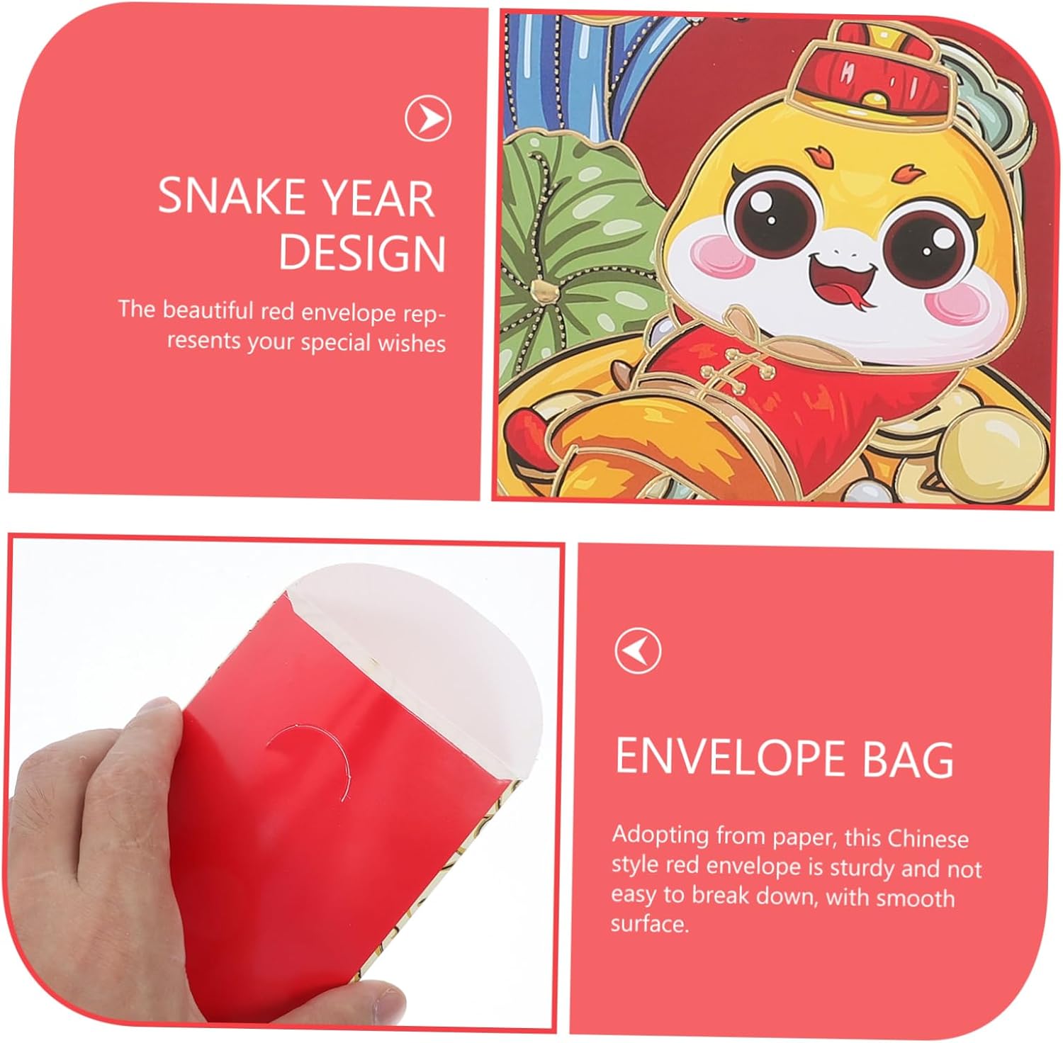 Elementi dell'anno del serpente: celebra l'anno del serpente 2025 con queste buste rosse che presentano elementi unici dell'anno del serpente, aggiungendo un tocco festoso ai tuoi regali. Miglioramento festivo: questi pacchetti rossi sono progettati per migliorare l'atmosfera festosa delle tue celebrazioni di Capodanno, rendendole più gioiose. capacità: le buste sono abbastanza spaziose da contenere una generosa quantità di denaro, garantendoti la possibilità di fare regali sostanziali. Facile da trasportare: il design portatile di queste buste le rende facili da trasportare e distribuire tra familiari e amici. ideali per molteplici occasioni: adatte per il capodanno cinese, matrimoni e altri eventi speciali, queste buste sono un ottimo modo per esprimere i tuoi auguri.