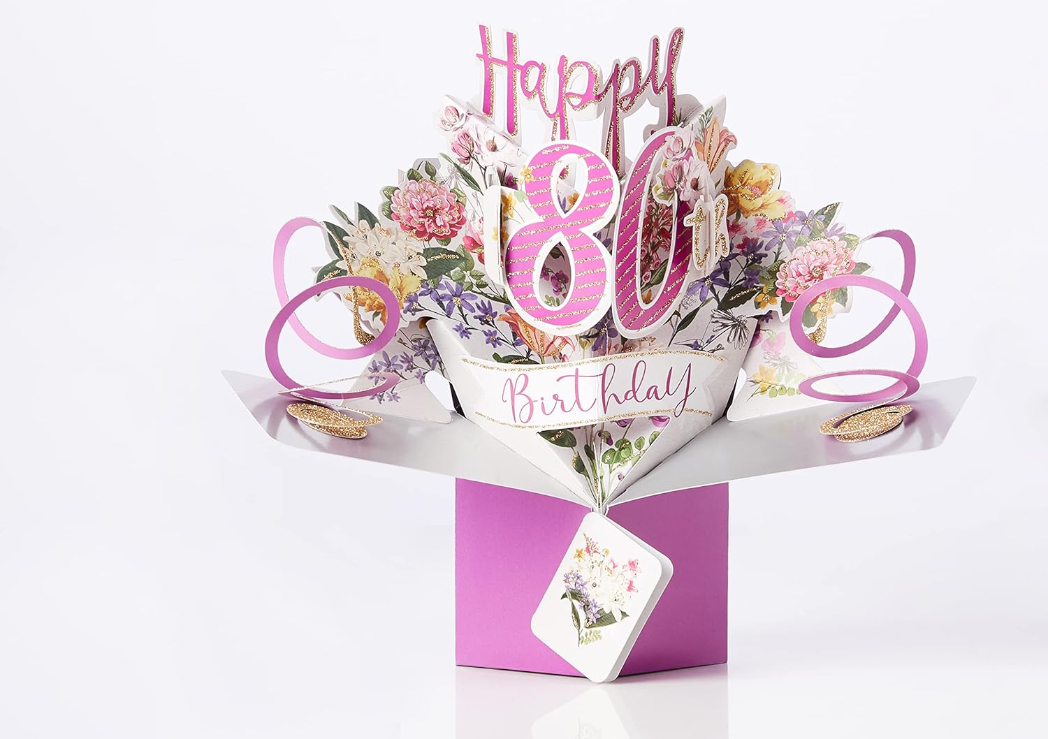 Questa carta 3D unica prende vita quando la tiri fuori dalla busta. È “guidato” da un elastico che “scatta” l'apertura istantanea quando viene estratto dal suo involucro. La carta può essere facilmente chiusa premendo i segni delle dita su entrambi i lati. Etichetta regalo e piccolo pannello laterale disponibili per scrivere il tuo messaggio personale. Le mappe possono essere utilizzate per molti altri scopi; perché non usarli come parte di una decorazione da tavolo per contenere un palloncino o come parte di una composizione floreale.