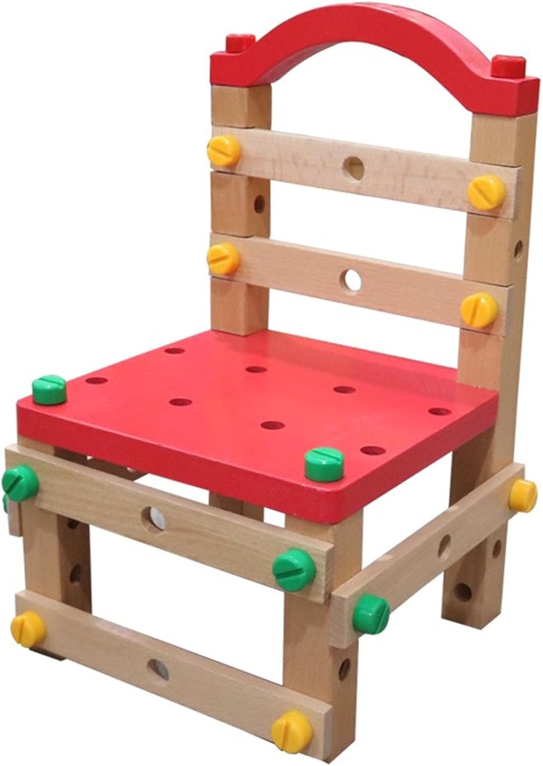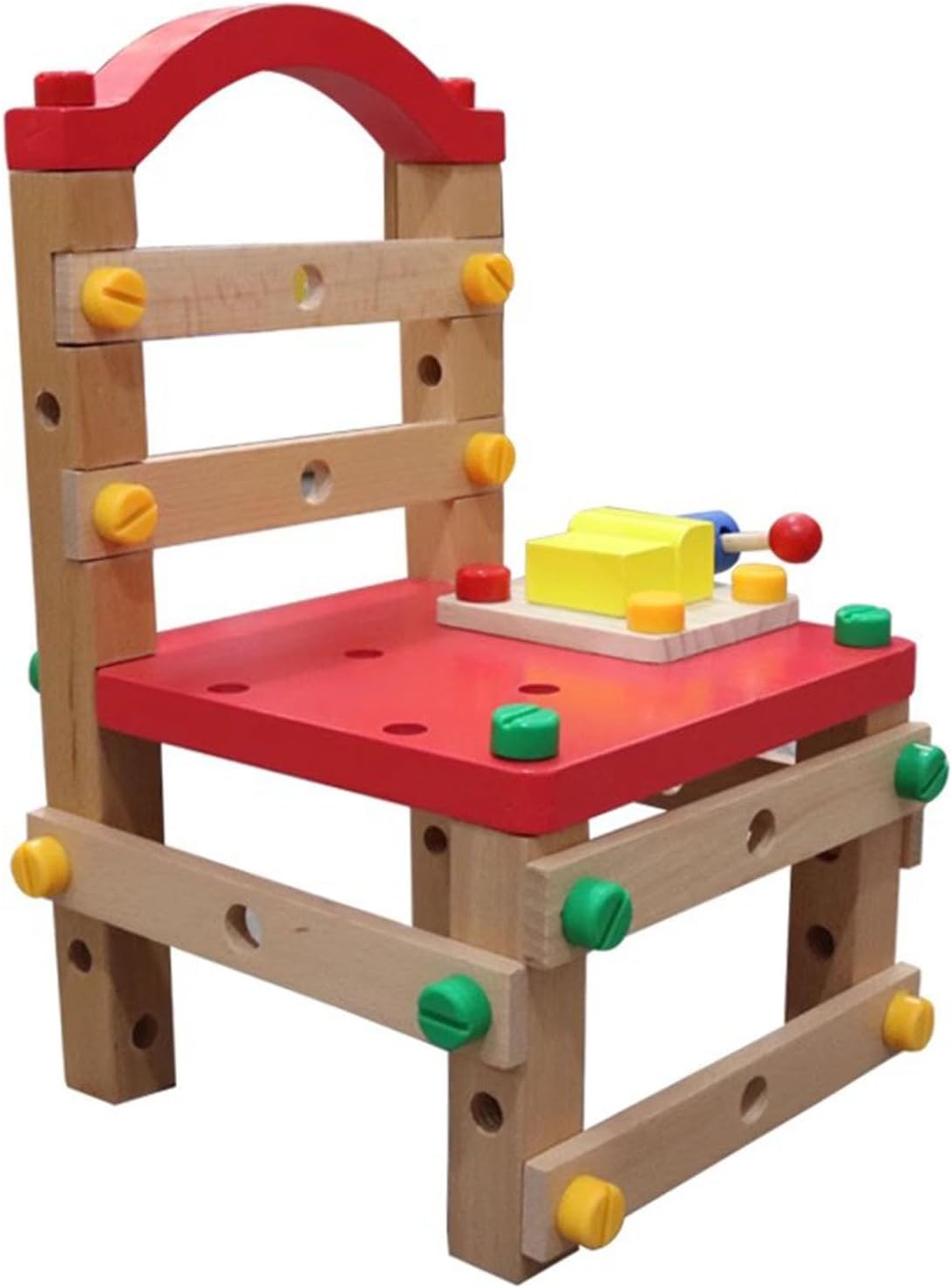 Il kit di costruzione in legno pregiato contiene tutti i dadi e bulloni in legno da 54 pezzi e tavole e blocchi di legno, che i bambini possono utilizzare per costruire una sedia giocattolo. Aiuta i tuoi bambini a sviluppare un'eccellente coordinazione occhio-mano, una concentrazione costante e capacità di risoluzione dei problemi. Esperienza di vita reale: Per i bambini troppo piccoli per maneggiare strumenti veri, questo banco da lavoro in legno sicuro realizza i sogni innovativi dei nostri piccoli costruttori prevenendo gli infortuni. Qualità premium: i nostri strumenti giocattolo in legno per bambini sono realizzati in legno di alta qualità per garantire durata e sicurezza. Il rivestimento esterno utilizza materiale ecologico, fornendo ai bambini un ambiente di gioco sicuro.