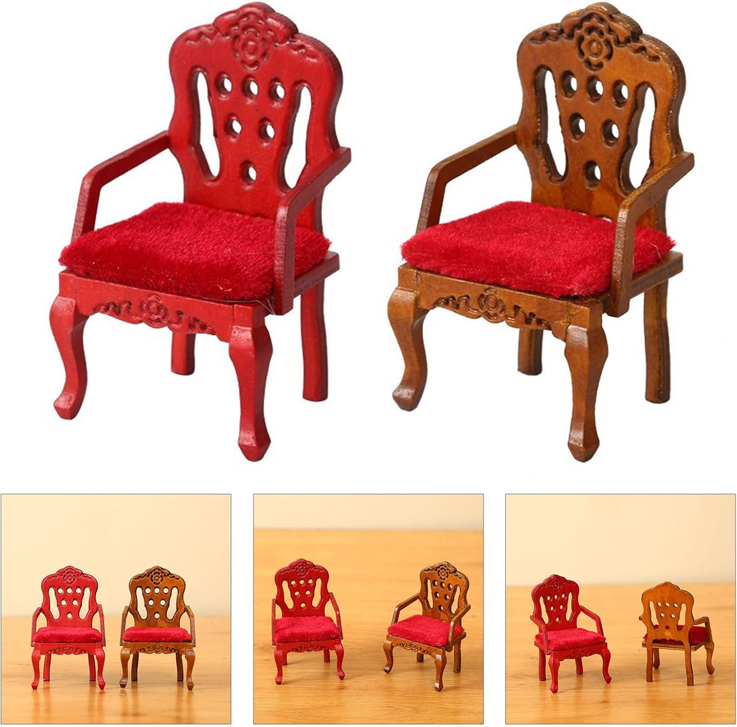 La nostra sedia per case delle bambole è adatta per case delle bambole in scala 1:12, modello dall'aspetto eccellente molto vicino alla realtà. Ottimi oggetti di scena per la fotografia Un modello giocattolo, non una vera sedia, un regalo molto pratico per gli amanti dei modelli che amano il fai da te e i decoratori di case delle bambole realizzano accessori per case delle bambole in miniatura dall'aspetto realistico, aggiungono semplicemente più fascino e divertimento alle tue case delle bambole