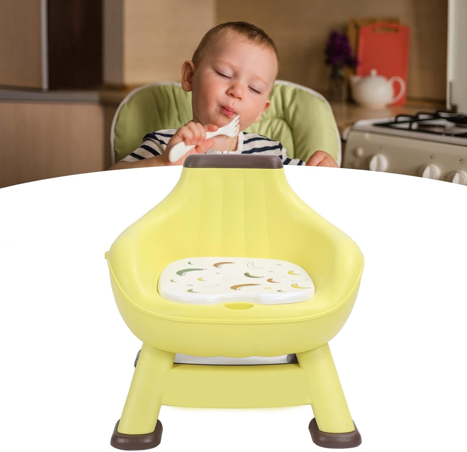 Protezione di sicurezza: il seggiolone adotta un design a forma di U, fornisce una comoda protezione della colonna vertebrale per lo sviluppo e previene il wrestling. Seduta stabile: la sedia multifunzionale per bambini è dotata di gambe da 4 piedi migliorate con un'ampia superficie di supporto, che consente una seduta stabile e sicura. Sedile con segnale acustico: seggiolino per bambini con un segnale acustico che può attirare l'attenzione del bambino e incoraggiare la sua immaginazione. Supporto per la schiena: seggiolone multifunzionale con supporto per la schiena che consente ai bambini di sedersi comodamente e garantisce un supporto affidabile. Sicuro e affidabile: seggiolone in plastica con struttura robusta e cuscinetto stabile per garantire la sicurezza del bambino.