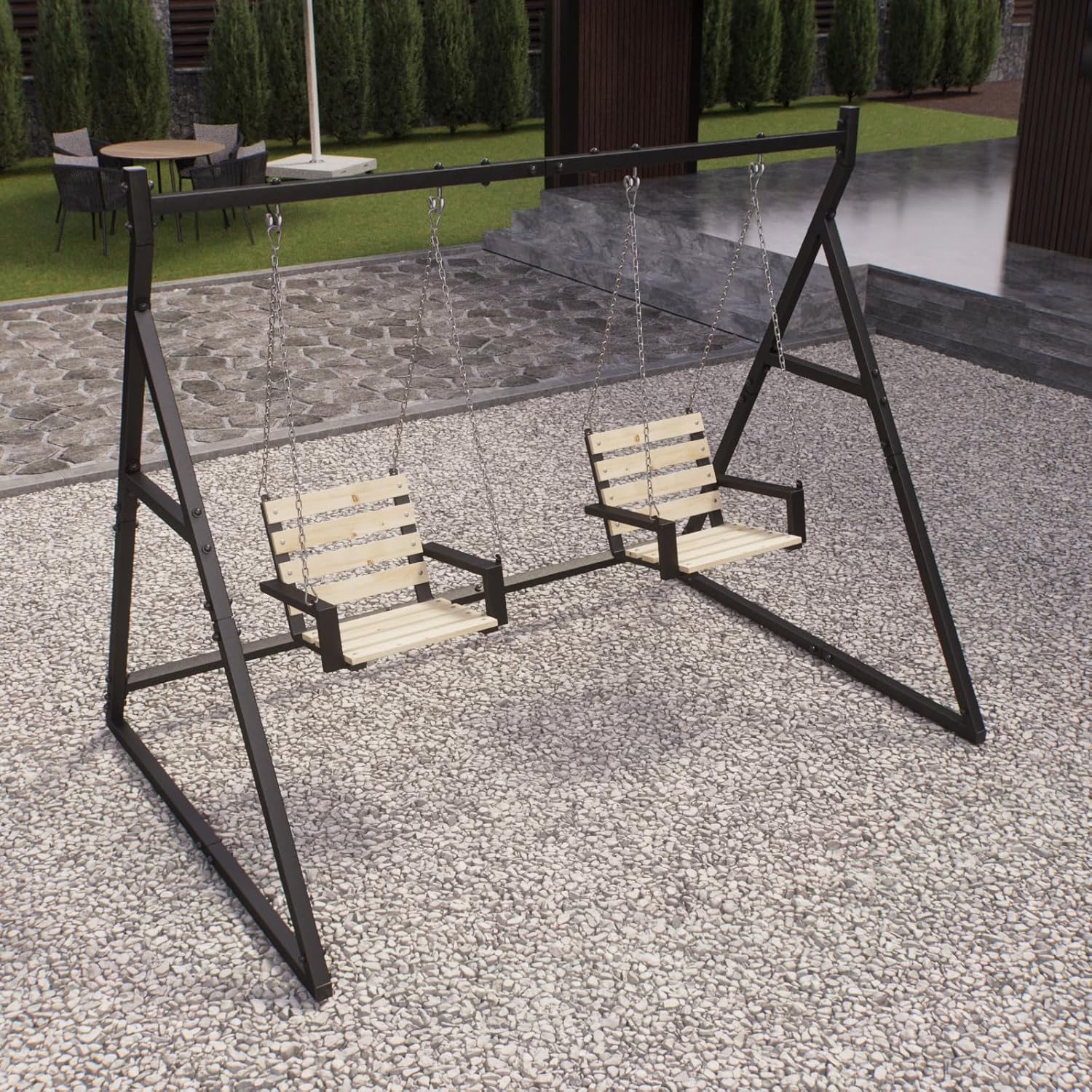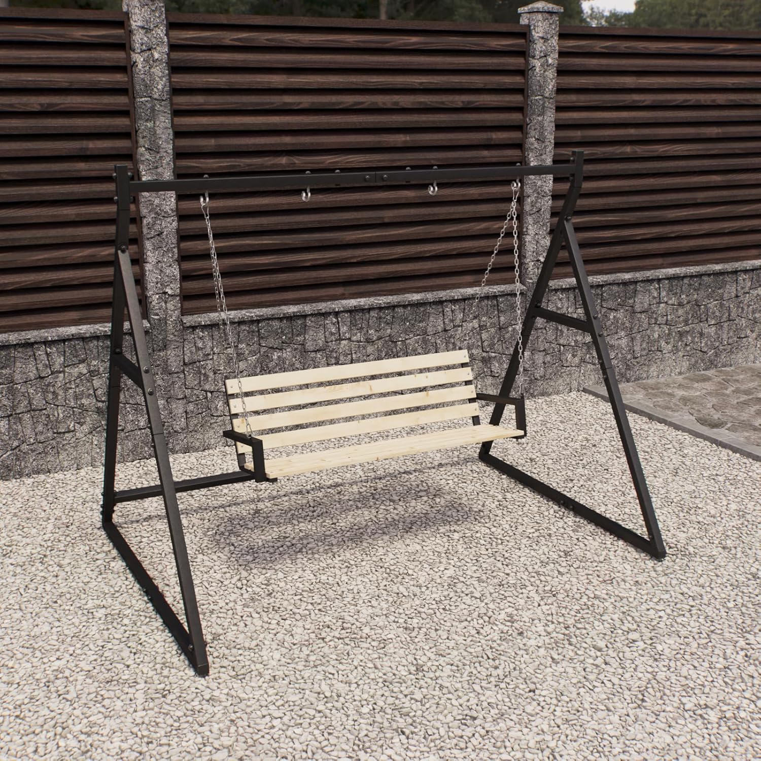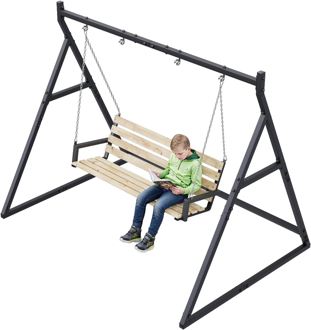 Extra stabile e resistente alle intemperie: robusto telaio ad A in acciaio verniciato a polvere per uso esterno tutto l'anno Uso universale: adatto per altalena Hollywood, altalena a nido d'uccello, panca sospesa o due altalene singole Con 4 ganci per appendere - Fissaggio sicuro grazie ai ganci preinstallati - Pronto all'uso Dimensioni generose: 210 × 180 × 212 cm offrono molto spazio per diversi tipi di altalene Montaggio rapido con accessori: kit di montaggio completo per un'installazione facile e stabile