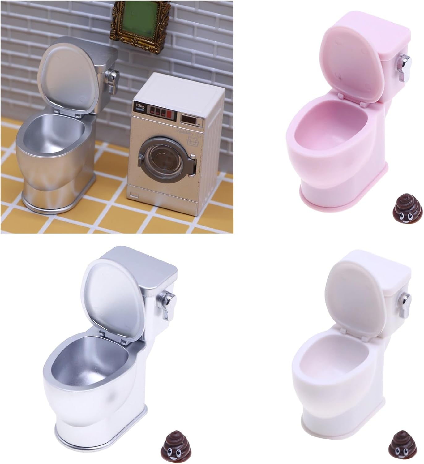 Questo accessorio per case delle bambole da 3x5,5x6 cm contiene texture autentiche e tre opzioni di colore per diversi decori da bagno in miniatura, tra cui: 1 modello di toilette e 1 modello di cacca (altri accessori non sono inclusi, è molto divertente fare un regalo ai decoratori di case delle bambole. Modello di toilette elaborato e vintage, compatto e tridimensionale, alto grado di riduzione, i materiali plastici non sono facili da deformare, modello dall'aspetto eccellente molto vicino alla realtà. Ottimi oggetti di scena per la fotografia.