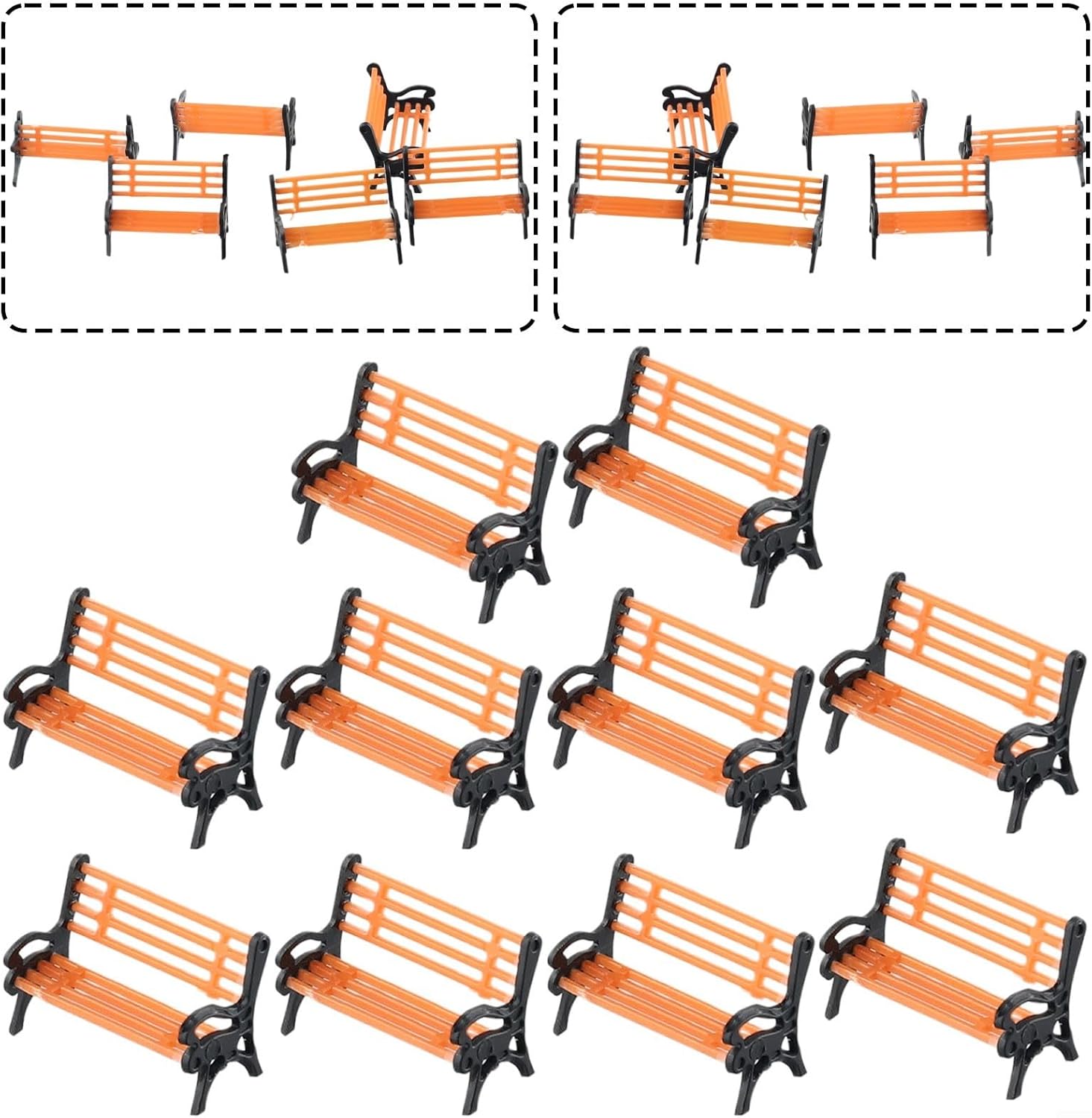 Set completo da 10 pezzi: questa confezione contiene 10 panchine finemente dettagliate che possono trasformare qualsiasi configurazione di modellino di treno o scena stradale in un ambiente più dinamico. [Aspetto realistico] Con tecniche di colorazione manuali applicate, queste panchine portano un tocco realistico al tuo diorama, attraenti sia per gli appassionati casual che per i collezionisti seri. Materiali ecologici: realizzate con materiali plastici sicuri, queste panche non sono solo visivamente accattivanti, ma anche ecologiche per uso esterno. Dimensioni ottimizzate per la scala HO: ogni panca misura 200,7 x 1,4 x 0,9 cm, su misura specificamente per layout in scala HO (187), si adattano perfettamente alla tua scena. Controlla la tua taglia: assicurati di verificare le dimensioni di cui hai bisogno poiché i colori e gli stili saranno inviati a caso.