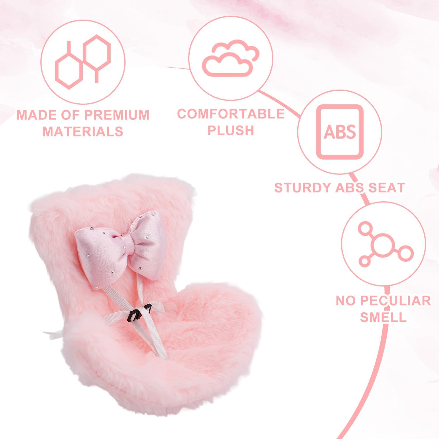 Il pacchetto include: riceverai un seggiolino per auto per bambole, un cuscino, una scatola, due clip di ventilazione AIL e due cinture di sicurezza. Si prega di notare che la confezione non contiene la bambola. Materiale premium: il seggiolino auto per bambola è realizzato in plastica e tessuto di alta qualità, robusto e affidabile, non facile da danneggiare e offre un'esperienza duratura e confortevole alla tua bambola. Sicuro e confortevole: il sedile affidabile è abbinato a un cuscino peloso e c'è una graziosa decorazione a fiocco, che crea un mini sedile perfetto per la tua bambola, che è comodo, sicuro e irresistibilmente carino. Facile da usare: dotato di una clip di montaggio, può essere facilmente installato su un espositore da tavolo o su una presa d'aria per auto per esporre i tuoi giocattoli di peluche. Non sono necessari altri strumenti, rapidi e convenienti. Ottimo regalo: questo simpatico seggiolino per auto in peluche è perfetto per la decorazione della casa, dell'ufficio o dell'auto. È un ottimo regalo per i collezionisti di bambole, gli amanti delle bambole e gli amanti della decorazione delle auto.