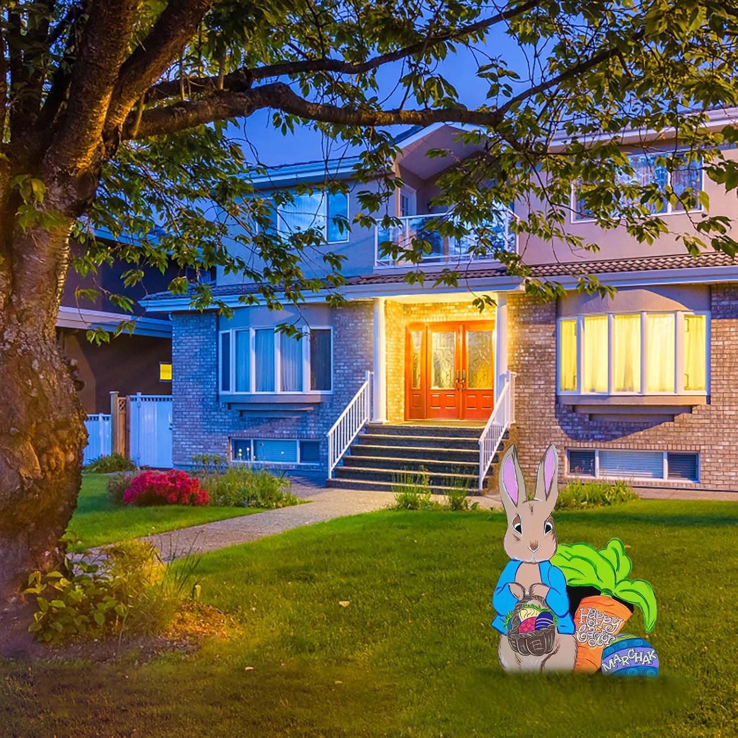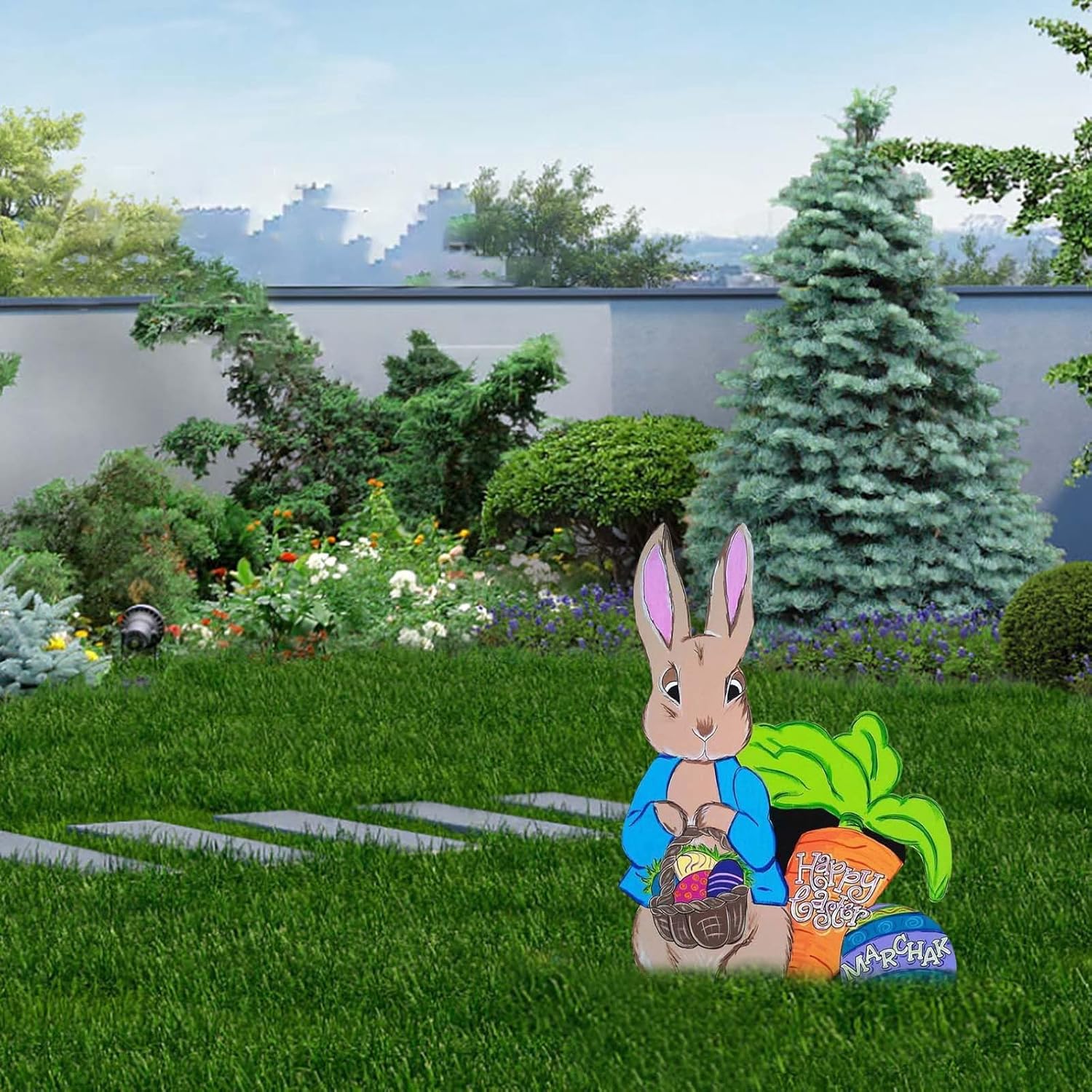 Logo da giardino esterno: realizzato con materiali di alta qualità, durevole e decorativo. Logo del coniglio: design classico pasquale, pulcino dei cartoni animati e motivo colorato con uova di Pasqua renderanno il tuo giardino più bello e bello. Coniglietto: coniglietto pasquale – La dimensione si adatta alla maggior parte delle scene e, con alcuni oggetti di scena festivi, funziona ancora meglio. Segnaletica: decorazione per feste pasquali, splendidamente realizzata con texture realistica, piena di atmosfera festiva. Decorazioni da giardino pasquale
