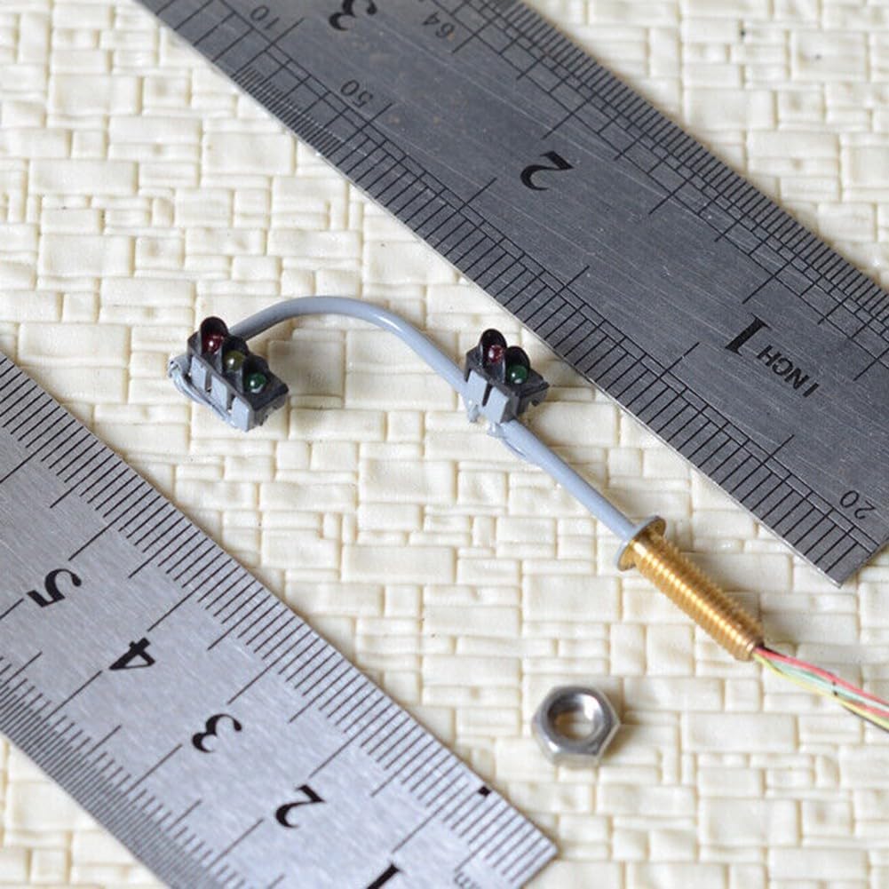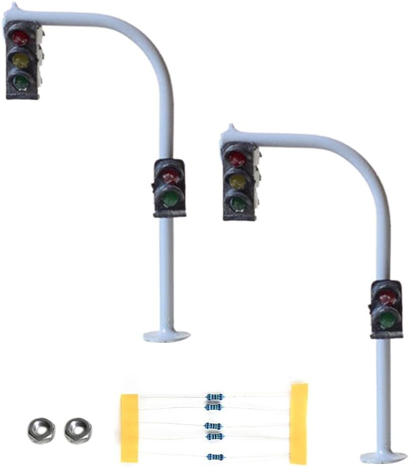 【Segnale stradale pedonale a LED】 Questo set include 2 semafori e modelli di attraversamento pedonale con luci a LED. Le luci sono progettate per essere facilmente illuminate e funzionano con una tensione di 3 V CC. Si consiglia di non superare questa tensione a meno che non sia collegata una resistenza a ciascuna luce. Ogni luce ha una corrente operativa di 20 mA, garantendo un consumo energetico efficiente. 【Adatto per layout in scala N】 Queste luci sono appositamente progettate per layout in scala N, rendendole adatte agli appassionati di modellismo ferroviario e ai costruttori di diorami. La dimensione delle luci può essere controllata utilizzando le foto fornite per garantire una perfetta adattabilità al tuo layout. 【Lunga durata e resistenza al calore】Le luci a LED utilizzate in questi modelli hanno una lunga durata e sono progettate per evitare il calore eccessivo. Ciò garantisce durata e funzionamento sicuro, offrendoti tranquillità durante l'uso prolungato. 【Pacchetto incluso】 Acquistando questo prodotto riceverai 2 luci completamente verniciate, 2 viti per l'installazione e 5 resistori. Questo pacchetto completo ti fornisce tutti i componenti necessari per impostare e migliorare l'estetica del layout del tuo mockup.