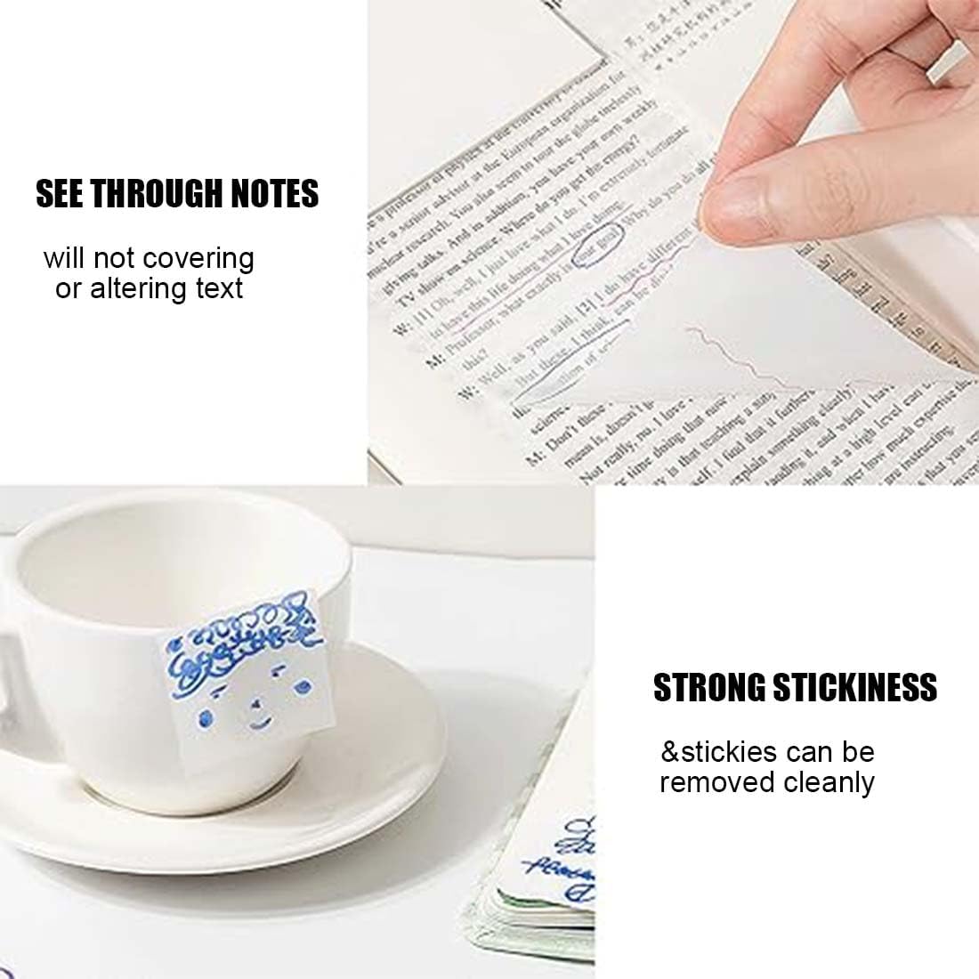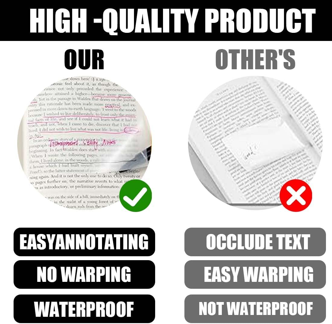 Materiale di alta qualità: i foglietti adesivi trasparenti sono realizzati in materiale PET impermeabile, facile da scrivere e garantiscono chiarezza e durata durante l'uso. Si consiglia una matita o una penna per ottenere i migliori risultati. Se prevedi di utilizzare un pennarello, un evidenziatore o una penna neutra, assicurati che l'inchiostro sia completamente asciutto prima di pulirlo. Quattro dimensioni: disponibile in quattro diverse dimensioni: 25 x 75 mm, 50 x 75 mm, 75 x 75 mm e 70 x 95 mm. Ogni formato è disponibile in confezioni da 2 con 50 fogli per confezione, per un totale di 400 fogli. Adattarsi a diverse esigenze e occasioni, da piccole a grandi, per soddisfare tutti i tipi di esigenze di prendere appunti ed etichettare. Design trasparente: l'esclusivo design trasparente rende le note adesive chiare e facili da leggere, puoi attaccarle sui tuoi libri o documenti e vedere facilmente i documenti o il testo sottostante senza rimuovere le note adesive. Facile da attaccare e spostare: i nostri foglietti adesivi trasparenti sono autoadesivi, aderiscono bene e possono essere facilmente attaccati a qualsiasi superficie liscia come muro, tavolo o cartella senza colla aggiuntiva o superficie magnetica. Sono inoltre facili da rimuovere senza lasciare residui o danneggiare le superfici. Uso versatile: i foglietti adesivi trasparenti sono ideali per l'ufficio, l'aula e l'uso domestico. Possono essere utilizzati per note e notifiche, contrassegnare documenti, creare elenchi di cose da fare, catturare idee e promemoria per aumentare l'efficienza del lavoro e dello studio.
