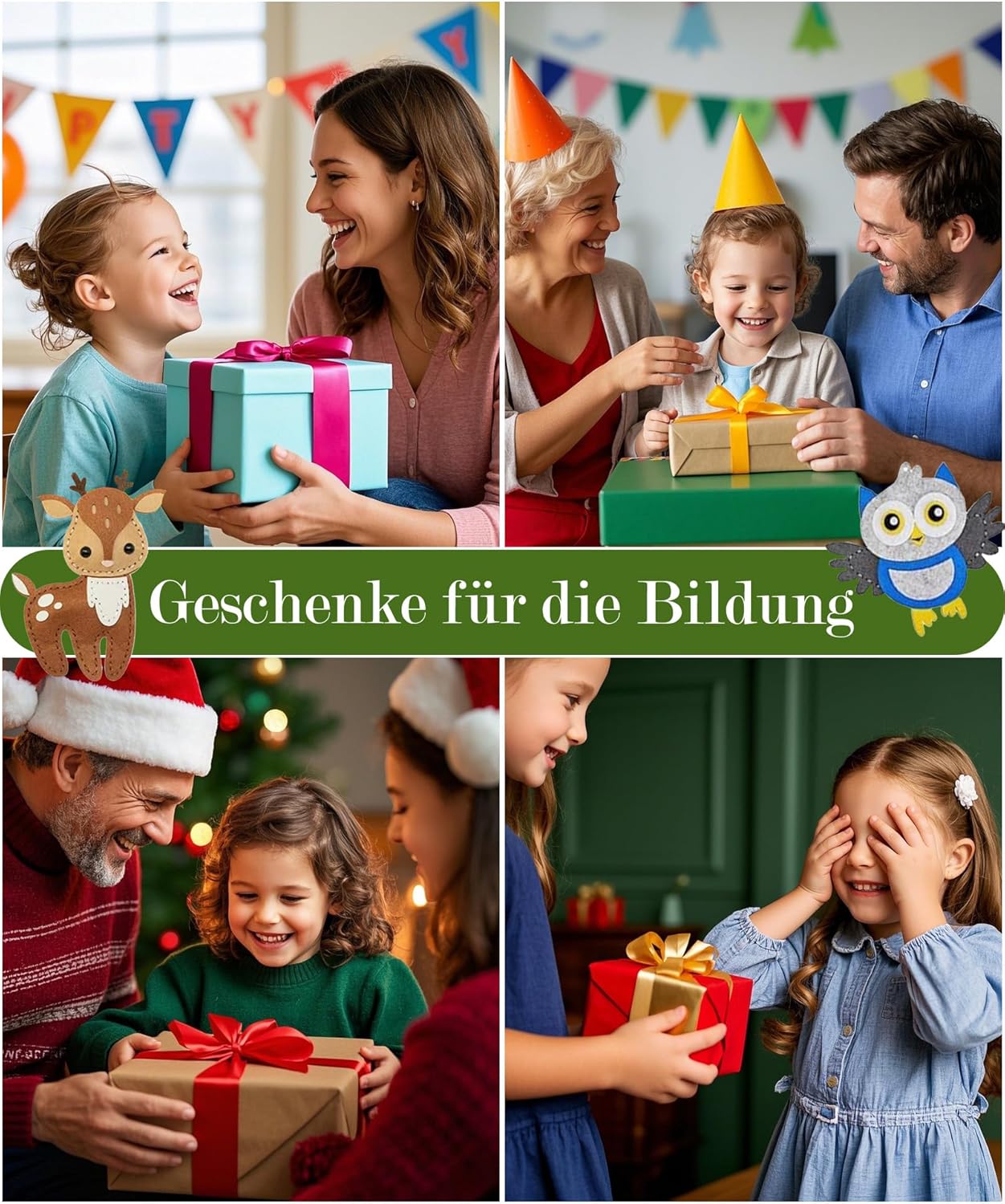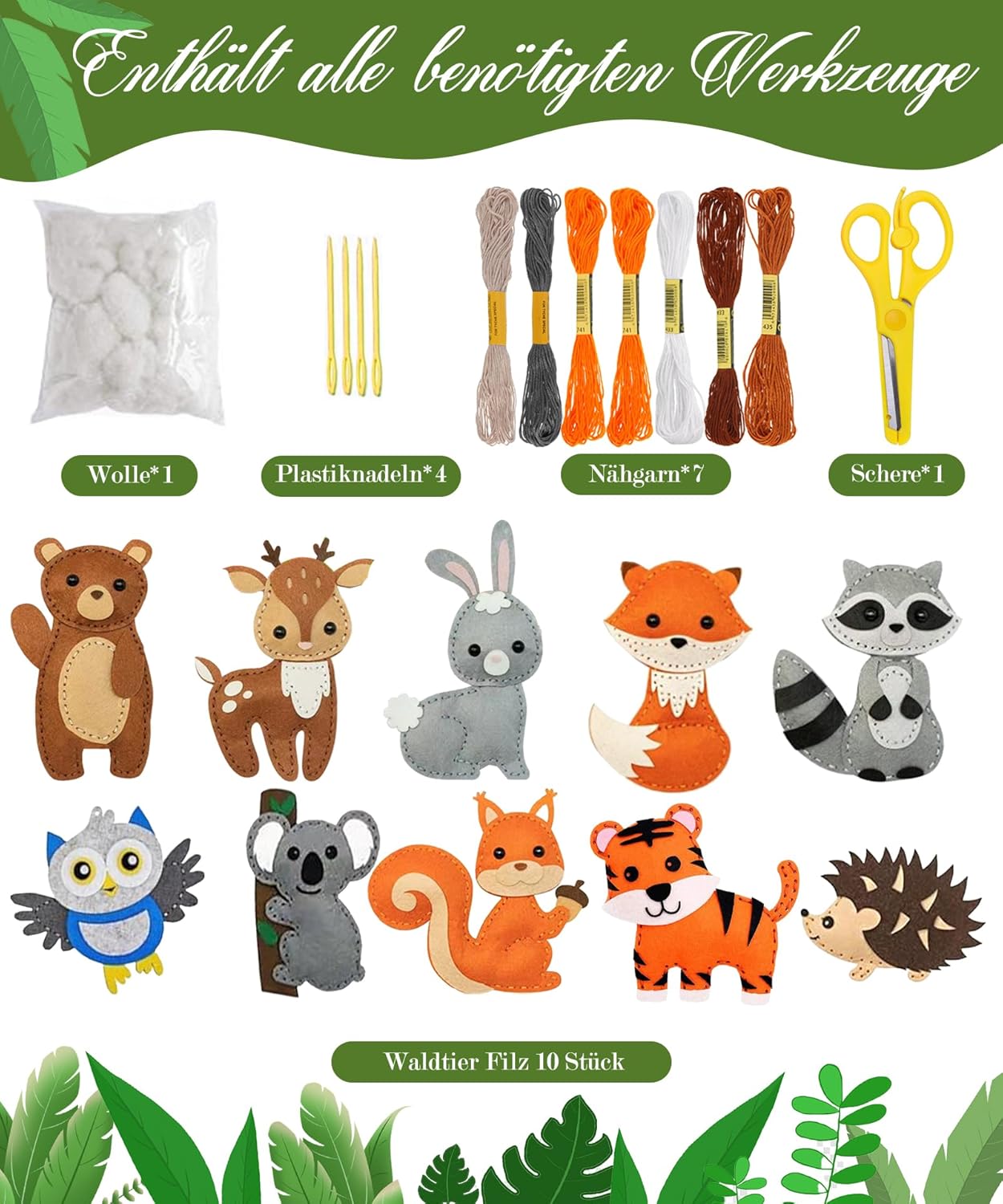 Fai da te divertente: il kit da cucito per bambini contiene 10 forme di animali dei cartoni animati. Colori ricchi e dettagli formano un mondo animale interessante. Ogni pezzo è confezionato singolarmente, in modo da evitare confusione tra le parti. Immergiamoci insieme in questo meraviglioso mondo di cucito Sicurezza del materiale: cucito per bambini Un kit da cucito molto semplice, adatto per le persone che imparano a cucire e amano fare il ricamo. Il kit da cucito della scuola degli animali magici include aghi da cucito in metallo e plastica, filo da ricamo, forbici sicure per i bambini e tutto il necessario per creare i tuoi animali Scena dell'habitat forestale: raccogli gli animali cuciti per creare una mini scena di habitat. Gli animali sono pieni di energia mentre vagano per ogni angolo della foresta. Il set da cucito in feltro per bambini porterà voi e i vostri bambini nella patria degli animali e vi permette di sperimentare il fascino della natura Allevia l'ansia: il set di feltro può essere impastato ripetutamente senza perdere la sua forma. I bambini possono passare il tempo e allo stesso tempo alleviare il proprio stress e paure. È anche molto adatto per i genitori per creare qualcosa con i loro figli e godersi il bel tempo delle attività genitore-figlio Importanza educativa: gli animali nel set da cucito di peluche sono dotati di fori per allenare e promuovere il pensiero spaziale dei bambini. Guida i bambini a imparare a cucire 3D e migliorare le loro abilità e conoscenze. Per bambini a partire dai 6 anni in su, il set per bricolage con animali in feltro è un ottimo regalo educativo Steam