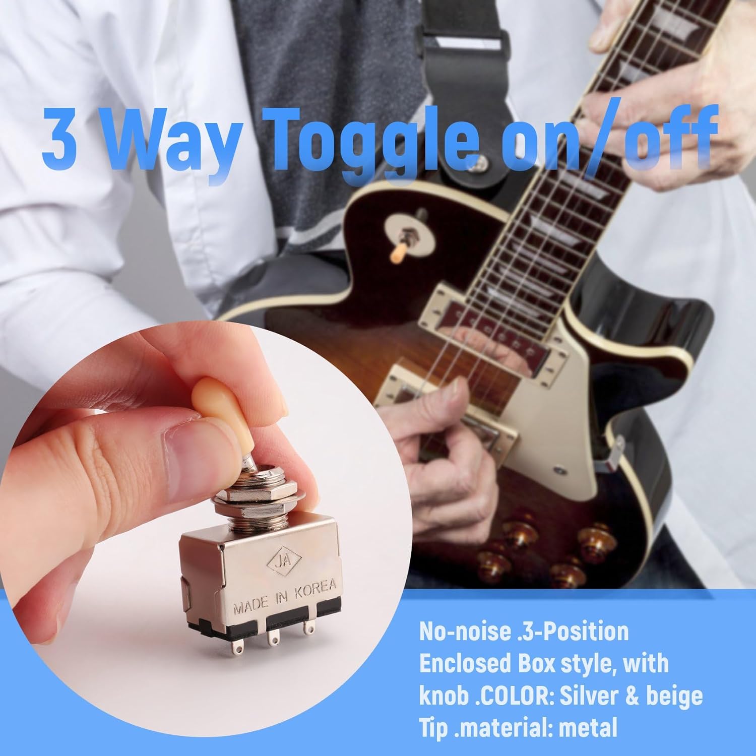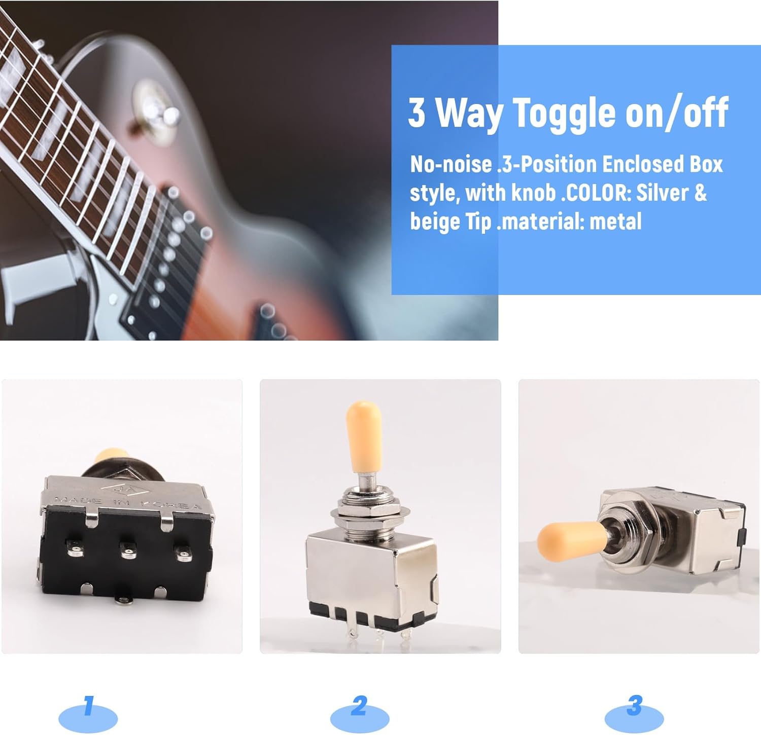 La dimensione è popolare nelle chitarre per basso prodotte al di fuori degli Stati Uniti / Messico. Interruttore a 3 vie rumore e di grande qualità Scatola chiusa con 3 posizioni, con manopola perfetto per o chitarra simile COLORE: e beige punta