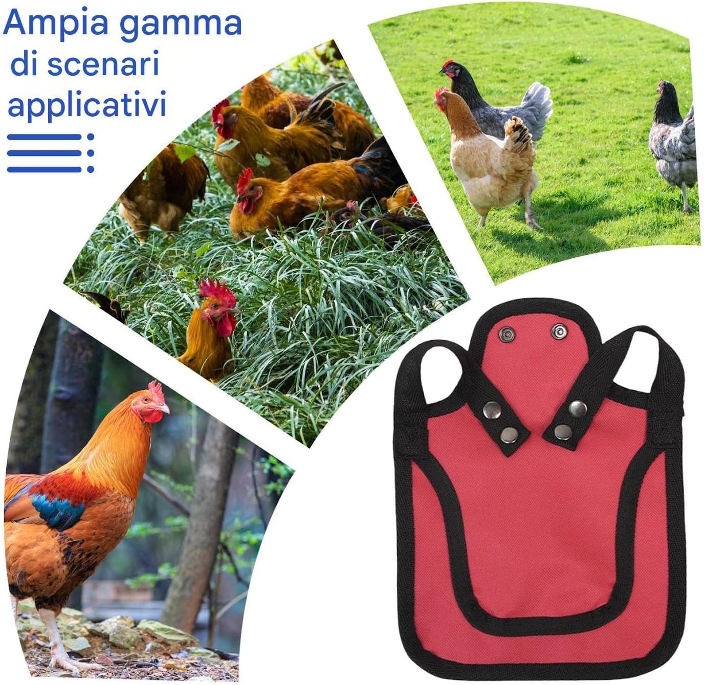 Tutela Piumaggio: Realizzata per resistere a graffi e lesioni, questa protezione minimizza la perdita di piume assicurando comfort e benessere alle galline ovaiole Soluzione Rigenerazione Comfort: Isola stimolazioni esterne indesiderate promuovendo una ricrescita piume efficace mediante supporto riparativo costante, aiutando il recupero naturale e il benessere delle galline ovaiole. Stabile vestibilità: Sella con fibbia a doppia posizione per regolazione flessibile della tensione, garantendo comfort ottimale e sicurezza durante l'utilizzo senza spostamenti Design comodo e areato: Sella traspirante e durevole per galline offre vestibilità sicura ma leggera, evitando disagi durante lunghi periodi di indossamento. Adattabilità: Combina traspirabilità e isolamento termico per performance affidabili in ogni condizione atmosferica, proteggendo efficacemente i polli tutto l'anno.