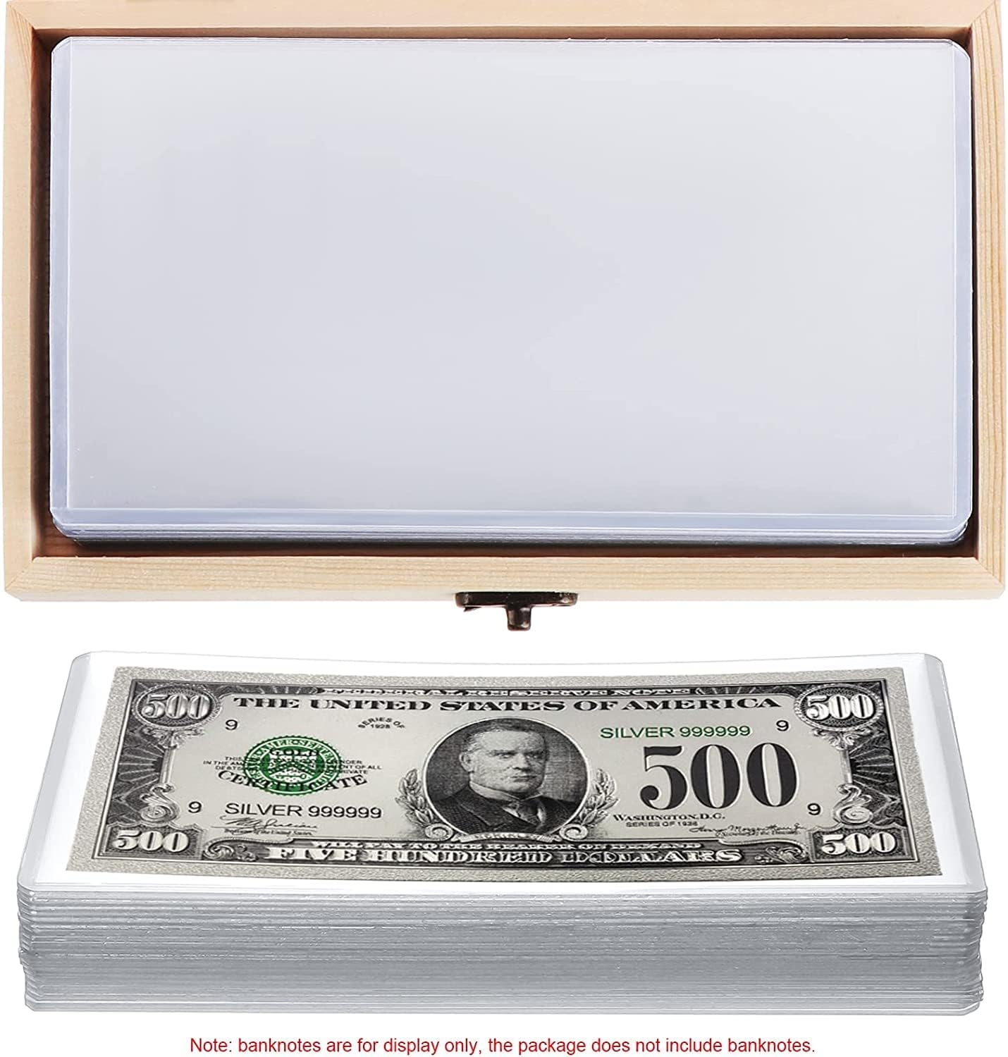 La scatola portamonete adotta materiale solido in legno di alta qualità per contenere 20 banconote, semplice ed elegante. La scatola porta banconote in legno è pratica e di lunga durata, ideale per proteggere le tue banconote commemorative, tenerle ordinate e organizzate. Pagine interne in PVC di alta qualità, sensazione di mano liscia, buon effetto prospettico, un modo meraviglioso per conservare i biglietti e memorizzare il numero di cartelle. La scatola per monete in legno è realizzata in plastica trasparente e spessa, antipolvere e atossica, con buona tenuta e resistenza all'ossidazione, resistente all'umidità, alla polvere e antiossidante, che aiuterà a proteggere in modo sicuro l'interno delle banconote. Può essere utilizzato per souvenir e collezioni, regali aziendali e regali decorativi per le vacanze. La scatola per la raccolta dei soldi è lucida e la superficie liscia è perfetta. Il materiale squisito e la delicata stampa vintage esaltano la trama della confezione regalo.