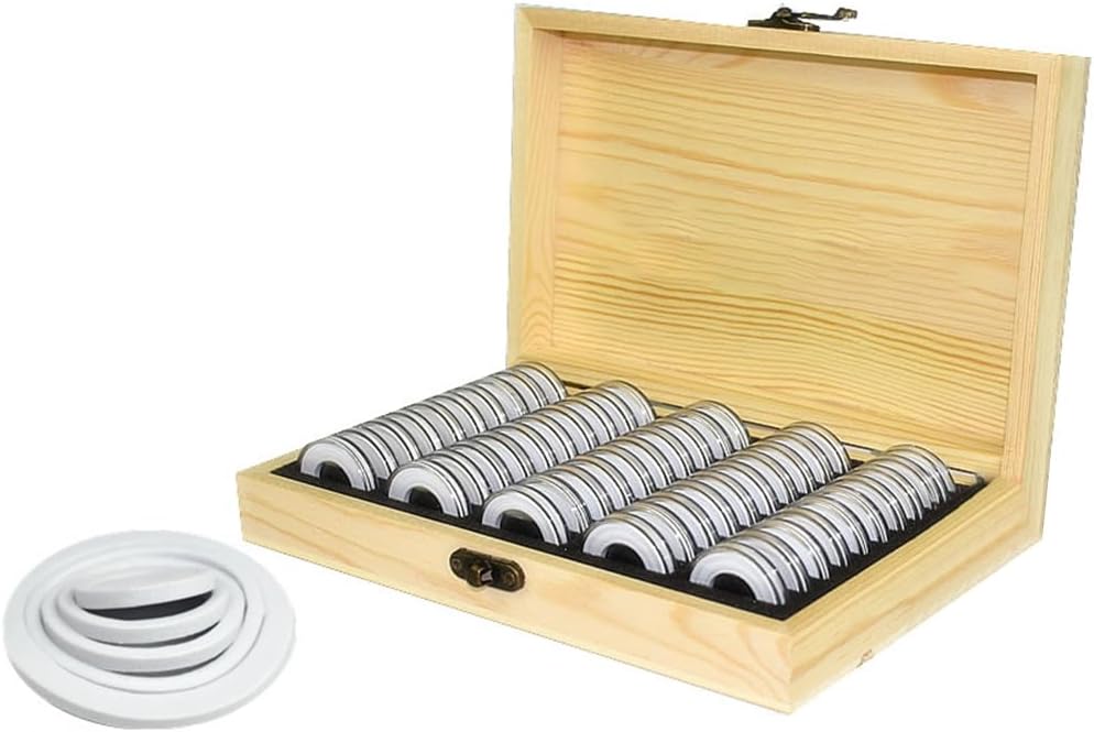 Portamonete rotondi trasparenti in plastica: proteggi le tue monete dai danni con questi portamonete in plastica trasparente da 33 mm. 【Apprezza la parte anteriore e posteriore】 Il design a doppio vassoio chiaro e piatto consente di stimare la parte anteriore e posteriore delle monete mantenendole al sicuro. Facile da aprire e bloccare: le capsule sono sicure da usare ma facili da aprire e bloccare, comodo accesso alle tue monete. 【Taglia e pulisci】 Realizzati in plastica super dura e rivestiti con elevata trasparenza, questi supporti hanno bordi ben tagliati per un aspetto pulito. Versatile e pratico: adatto a tutti i tipi di monete, comprese monete di rame, argento, commemorative e d'oro. Il prodotto è facile da usare e trasportare.