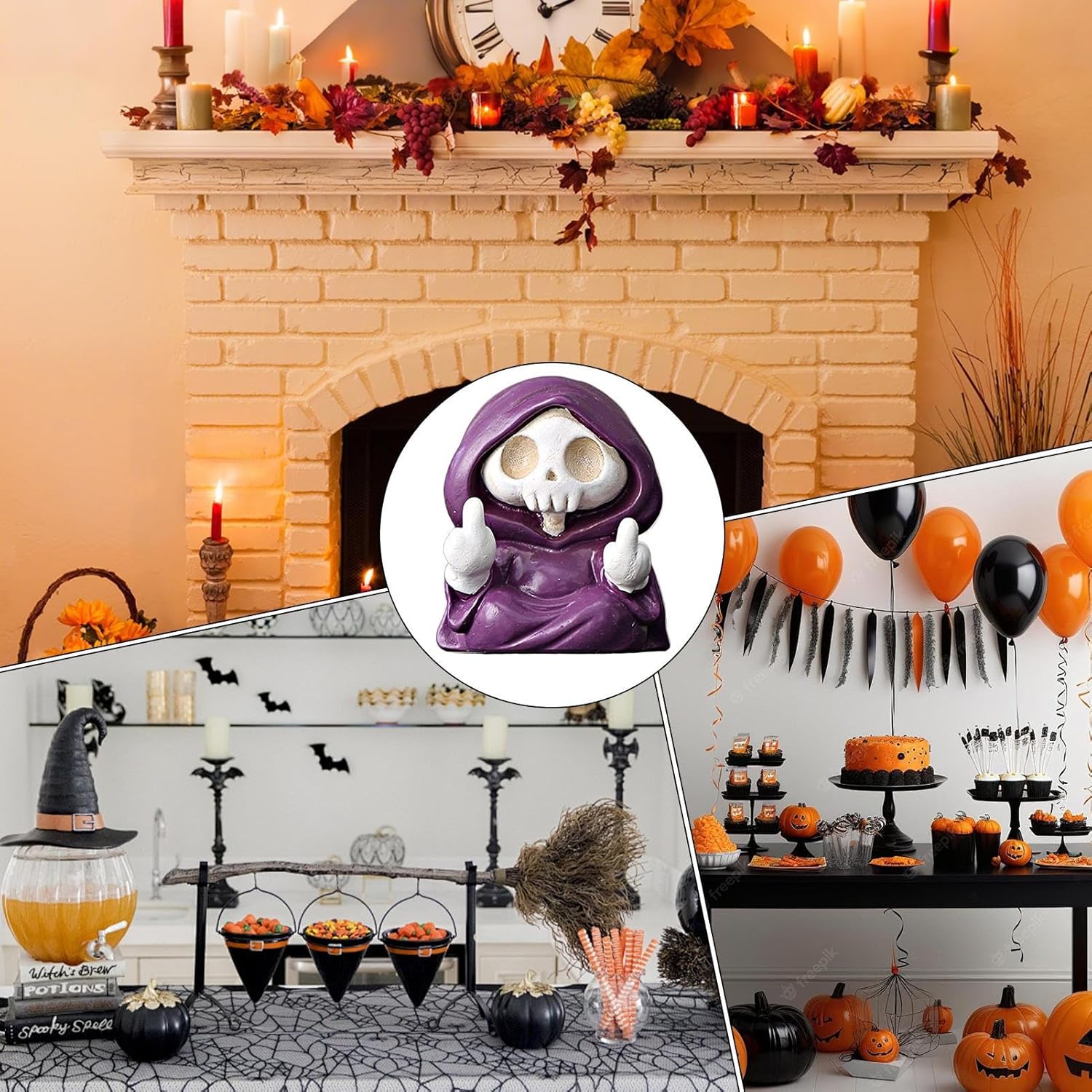 Resistenza:: la figura in pietra artificiale solida resiste a sollecitazioni meccaniche in modo permanente. La finitura rimane resistente allo sbiadimento grazie allo speciale trattamento e protegge dalla perdita di colore in caso di esposizione alla luce. Dettagli di alta qualità: la statuetta Reaper combina linee morbide con una superficie opaca gelida. Questa eccezionale lavorazione aumenta l'attrazione visiva e offre una piacevole sensazione al tatto. Miglioramento della decorazione: l'accattivante forma a taglio di questa statuetta aumenta facilmente il valore della decorazione creando un'atmosfera vivace e coinvolgente in ogni stanza Decorazione versatile: si adatta perfettamente alla scrivania, alla libreria, al camino, al mobile TV o all'ingresso; offre possibilità di progettazione creativa e aggiunge un tocco di stile a diversi spazi. Ottimo regalo: crea un'atmosfera coinvolgente come regalo perfetto per Halloween per la famiglia o gli amici, aggiunge fascino speciale alle celebrazioni grazie al tocco misterioso e garantisce momenti sorprendenti pieni di gioia