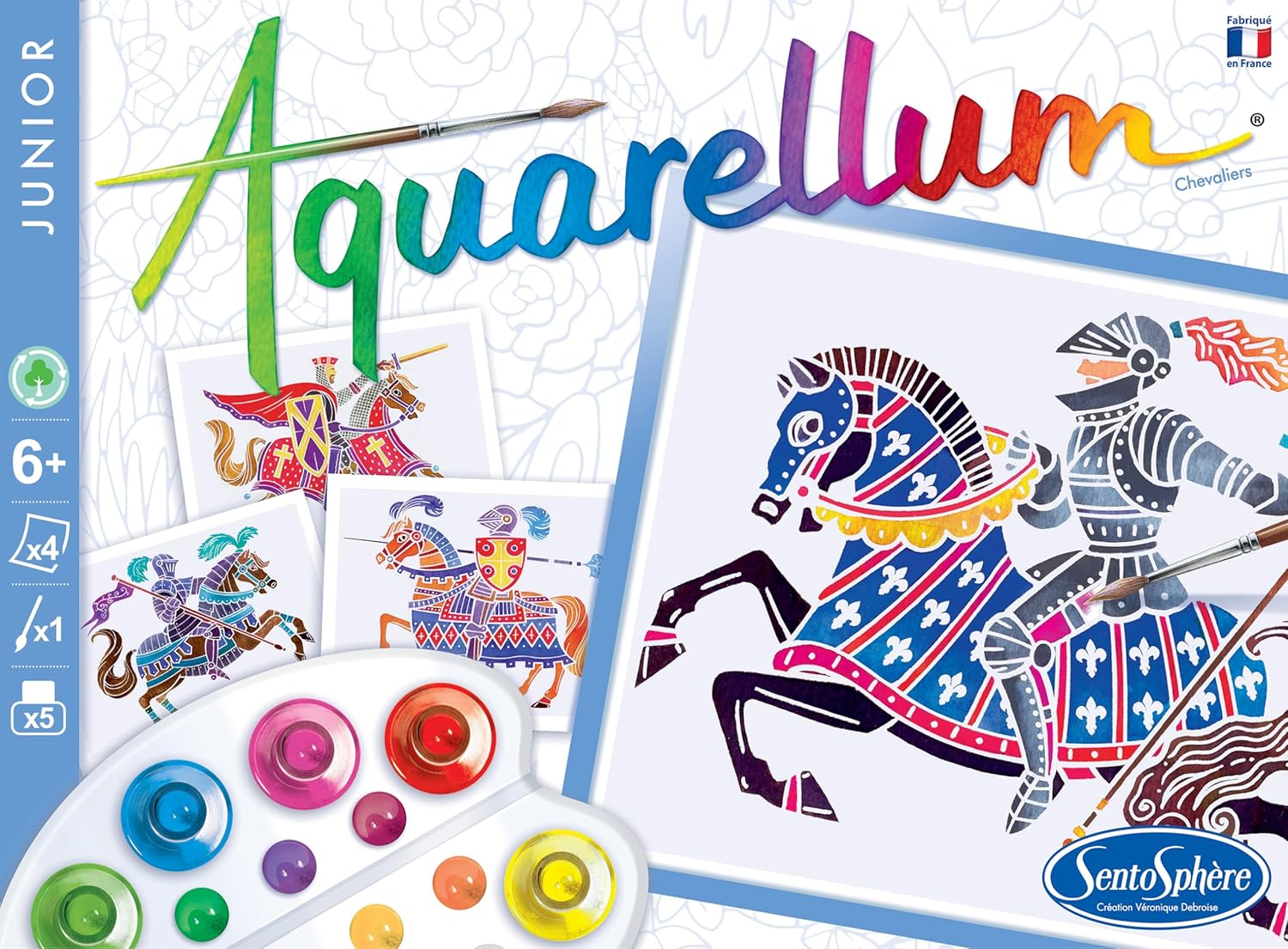 Set completo da colorare per bambini con motivi fiabesci di cavalieri e i loro coraggiosi castelli da colorare con acquerello.