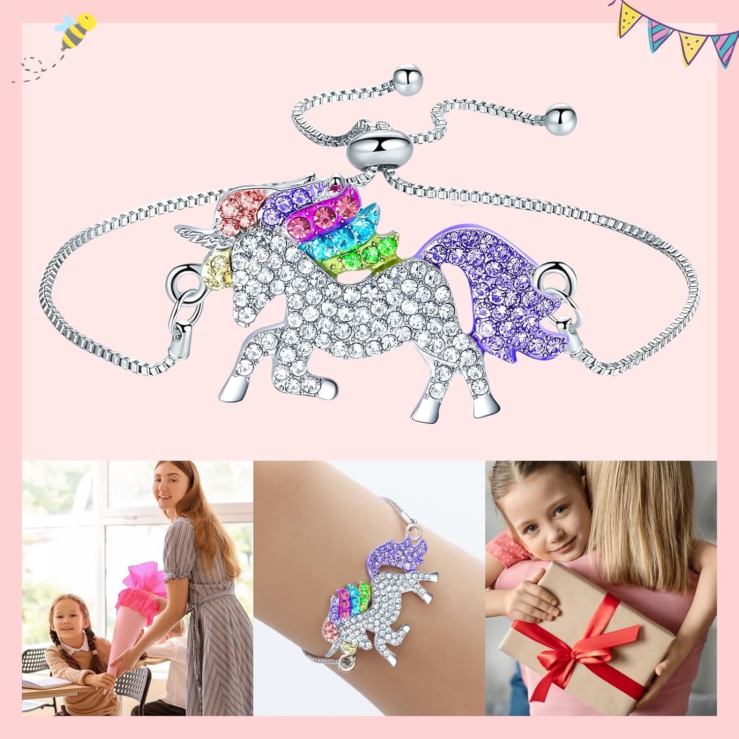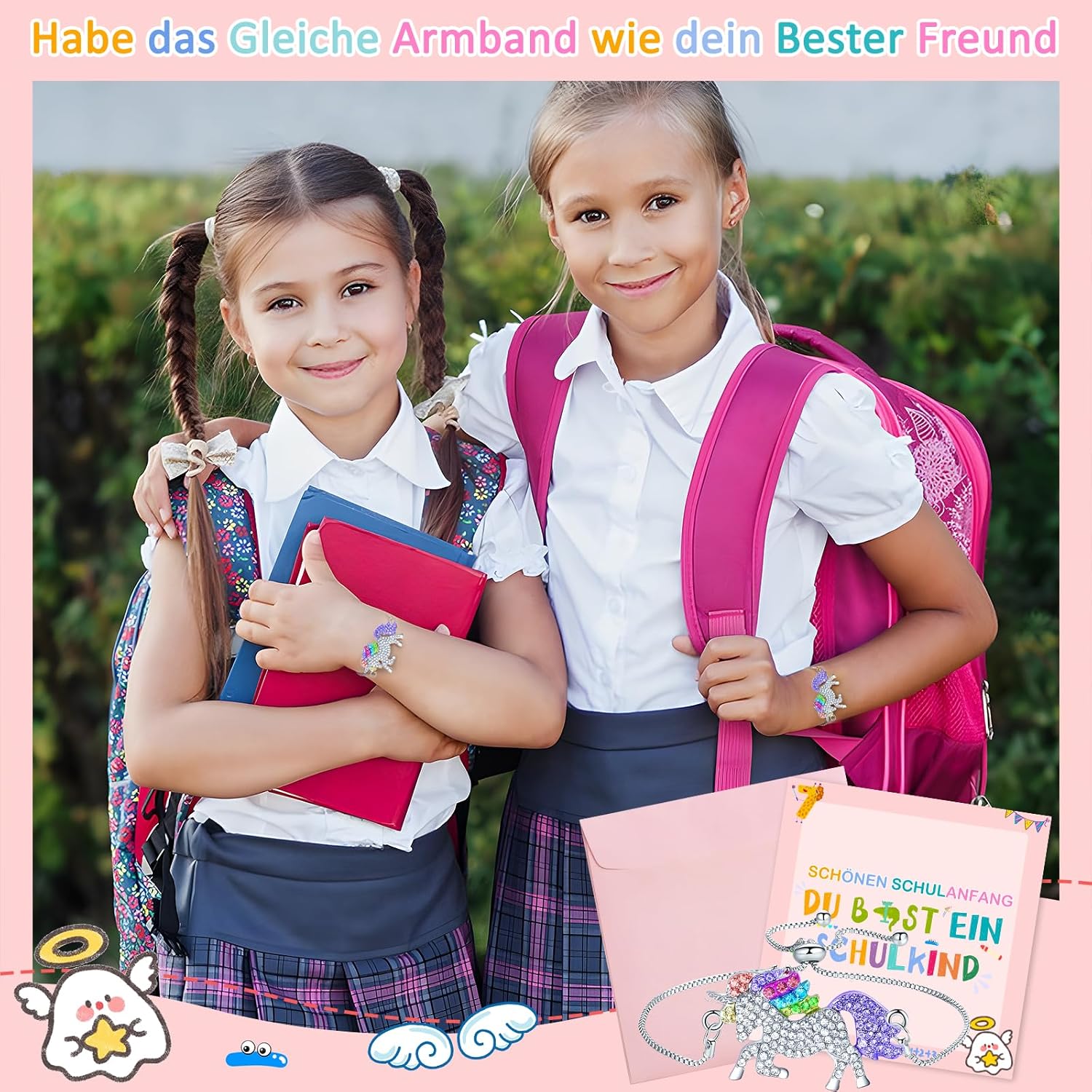 💌【Dolce regalo per il rientro a scuola per ragazze】Riceverai 1 braccialetto con unicorno + 1 biglietto di ammissione in una busta rosa per ragazze. Sorprendi tuo figlio con una premurosa sorpresa quando inizia la scuola con i nostri dolci regali per il rientro a scuola e regalale un unicorno per accompagnarlo nel cammino verso la scuola. Ideale come regalo per il rientro a scuola per creare meravigliosi ricordi. Presentato alla ragazza in una busta rosa Biglietto d'auguri per l'ingresso