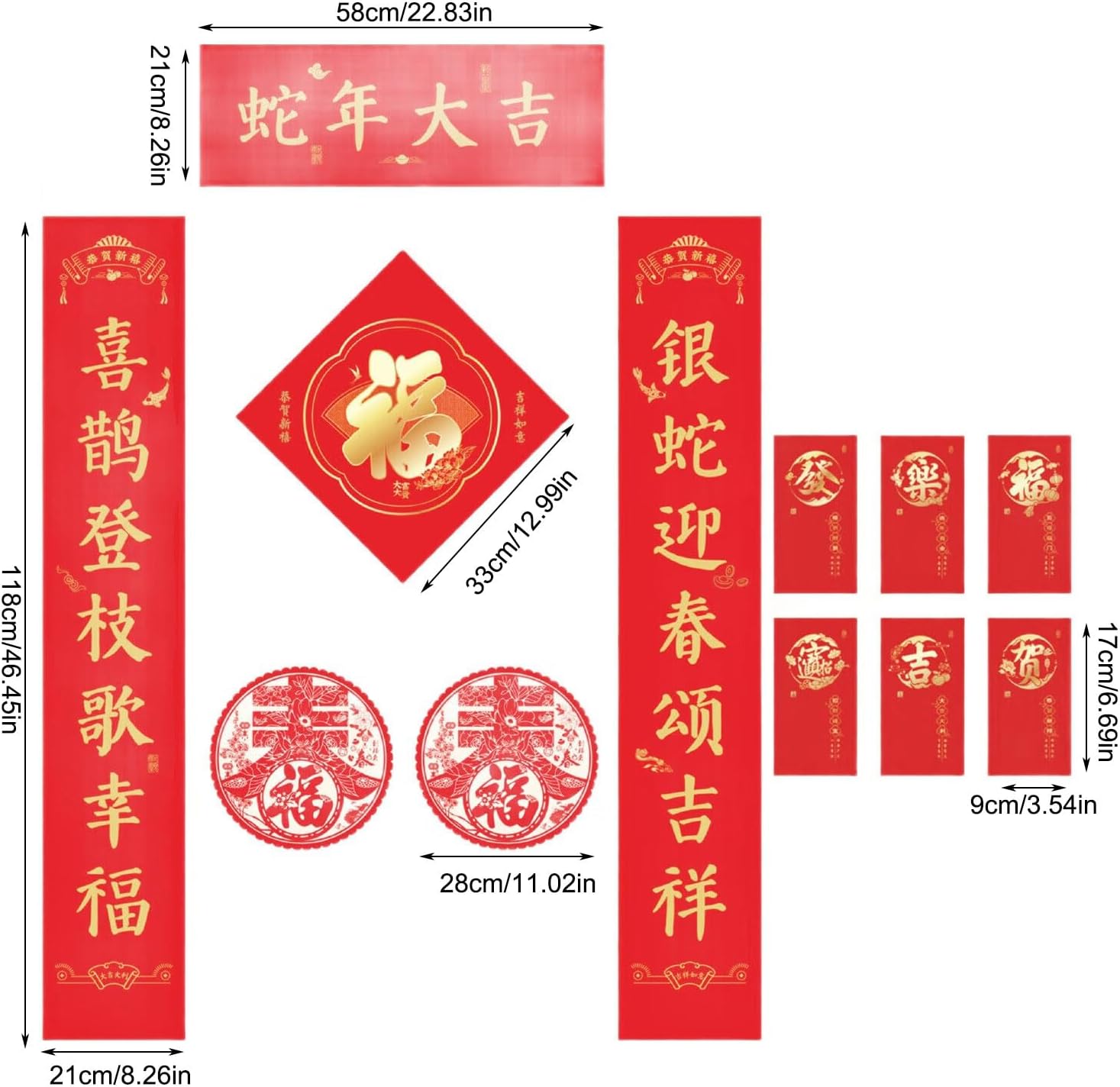 Adatto per chi cerca di rispettare la tradizione del nuovo anno, soprattutto per coloro che amano le decorazioni culturali e gli ornamenti per festival Questo set presenta un paio di distici stampati su carta, che mostrano disegni intricati che simboleggiano fortuna e felicità per la stagione dei festival Questi distici possono essere esposti in ufficio o in negozio, aggiungendo un tocco di eleganza tradizionale a qualsiasi spazio Festeggia l'anno del serpente con il nostro set di distici per il capodanno cinese 2025, una miscela di auguri e squisiti artigianato Regala l'aria di prosperità con questo set unico, rendendolo un regalo per amici e familiari