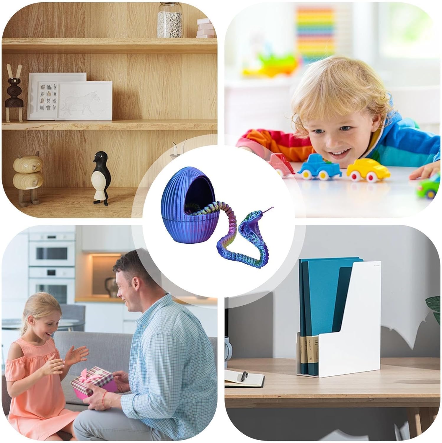 Design innovativo e distintivo: il nostro uovo di serpente stampato in 3D mostra uno straordinario mix di influenze industriali e naturali, presentando una forma unica e creativa accentuata da elementi di ingranaggio e un aspetto intelligente e meccanico. Aggiunta decorativa: migliora il tuo spazio con un accattivante uovo di serpente stampato in 3D. Il suo aspetto realistico aggiunge un tocco di unicità e mostra il tuo gusto e la tua personalità. Esperienza di gioco migliorata: goditi un tempo di gioco più versatile con la funzione articolare mobile dell'uovo di serpente stampato in 3D. Il design mobile di ogni giunto migliora l'esperienza di gioco e offre più opzioni di posizionamento e movimento. OTTIMO MATERIALE: il nostro uovo di serpente stampato in 3D è caratterizzato da un'eccellente qualità e una lavorazione perfetta, che lo rendono un'aggiunta robusta e visivamente sbalorditiva a qualsiasi collezione o esposizione. Un must per i collezionisti esigenti REGALO PERFETTO: il design accattivante e il concetto ingegnoso rendono questo uovo di serpente stampato in 3D un regalo perfetto per gli amanti degli anime e della scienza. Un regalo raro e straordinario