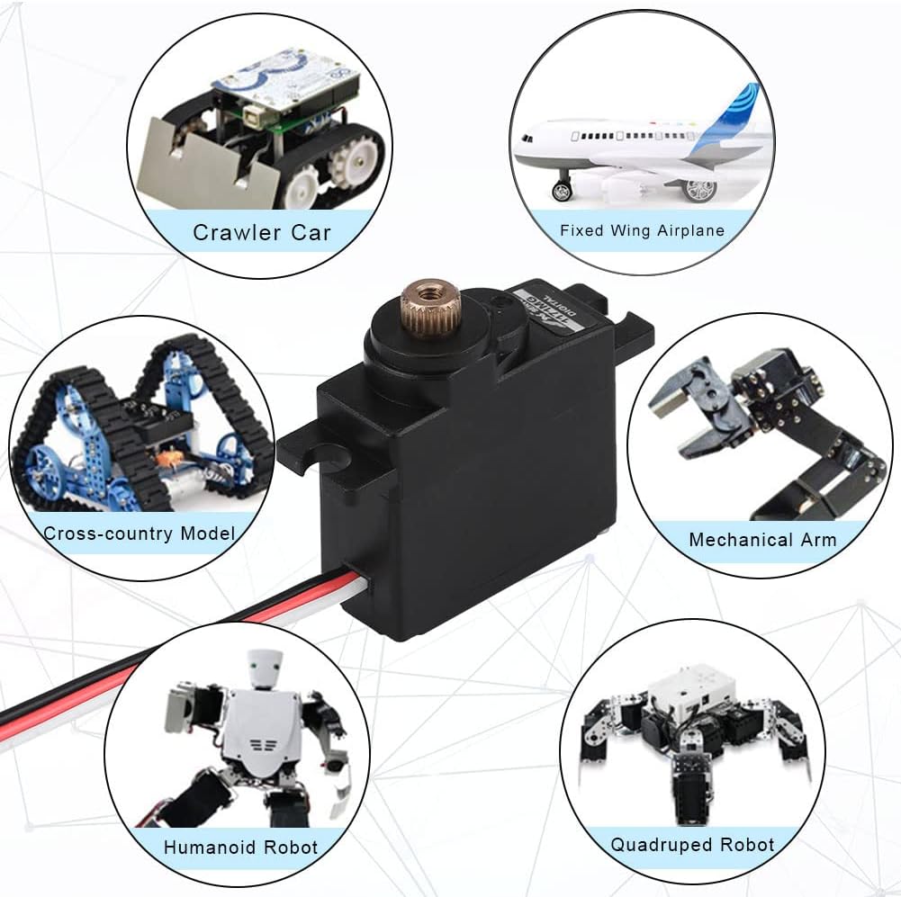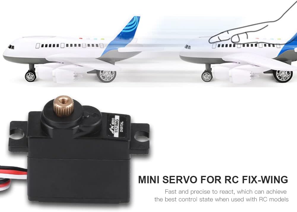 Progettato per aerei ad ala fissa: garantisce reazioni precise e rapide per prestazioni ottimali. Mini formato a coppia elevata: consente risposte rapide e precise, ideali per gli appassionati di RC. Funzionamento efficiente e silenzioso: goditi l'alta efficienza con basso rumore e consumo energetico. Robusto ingranaggio in metallo: resiste a carichi pesanti maggiore durata, facile da installare e smontare. di 180 giorni: stai tranquillo con la nostra e l'assistenza clienti dedicata per qualsiasi richiesta.