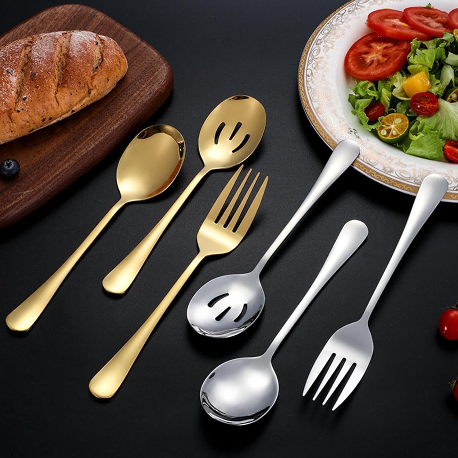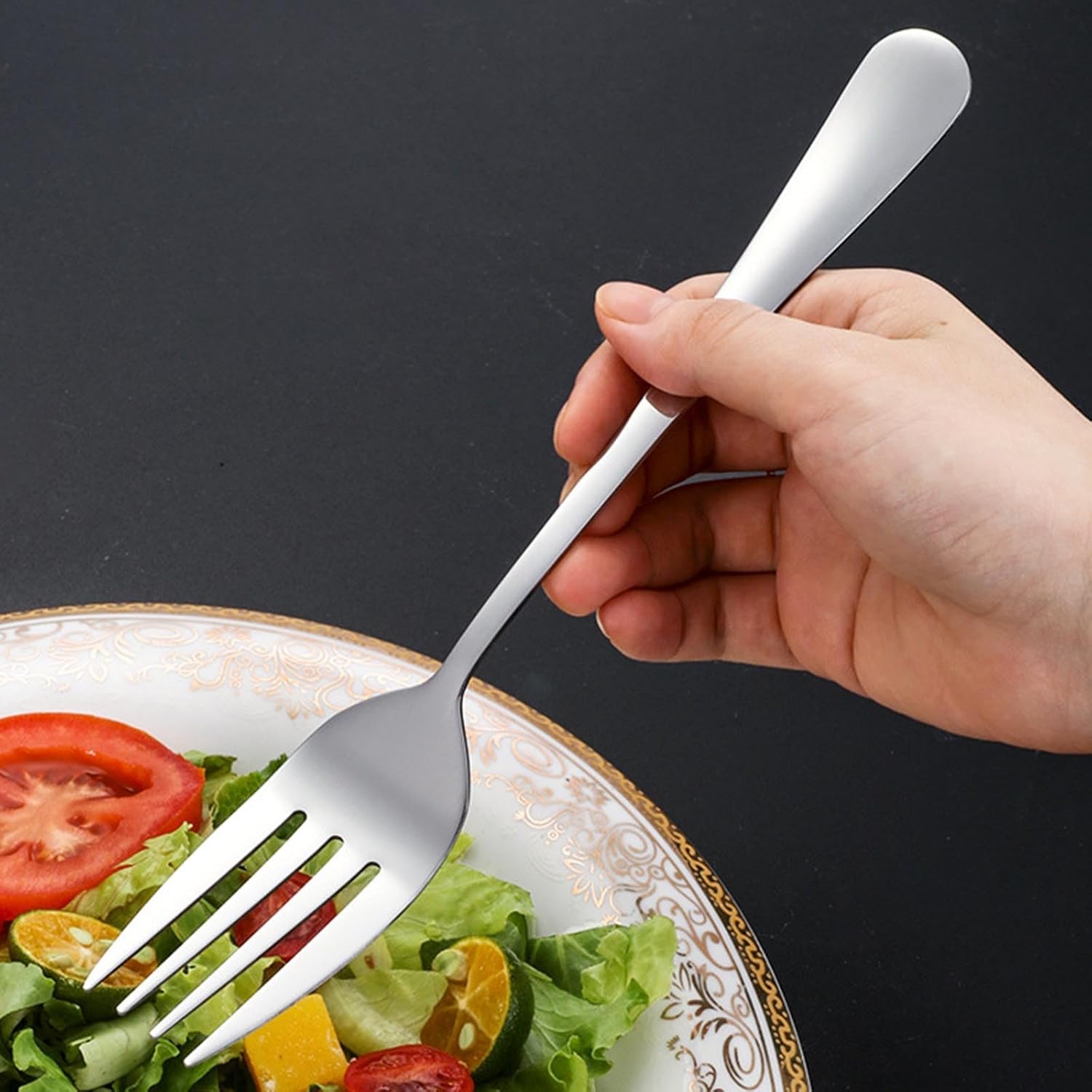 Materiale in acciaio inossidabile, non si corrode facilmente, igienico e Squisita fattura e design ergonomico. Il manico spazioso è molto confortevole, il che lo rende facile da trasportare o per pasta e altri alimenti Questi bellissimi server sono anche squisiti per la famiglia e per Natale, compleanni, matrimoni e altre occasioni. Set di 8 cucchiai e forchette Processo, il prodotto è liscio come un , facile da pulire