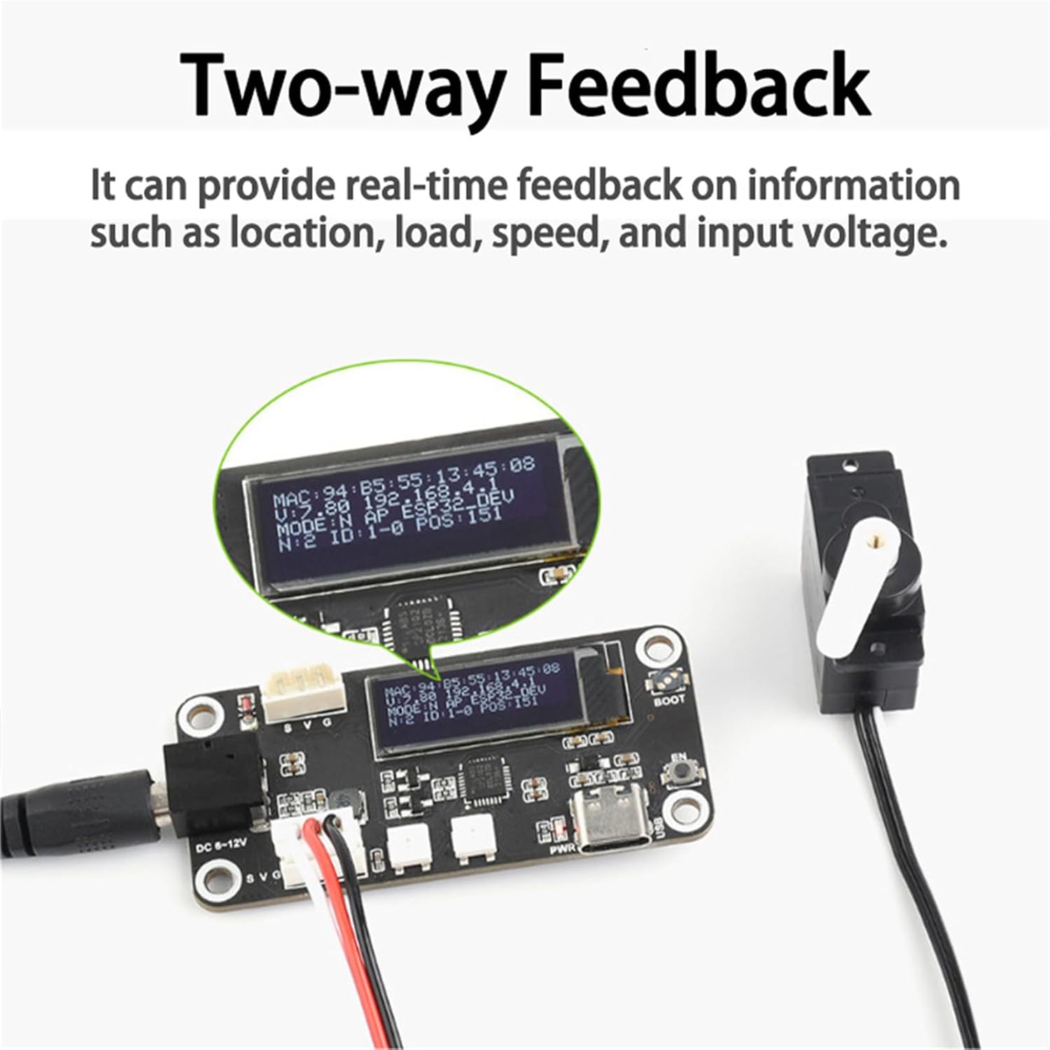 Dotato di un comparatore digitale, consente un controllo e un posizionamento precisi dell'angolo, garantendo un movimento preciso e stabile Elevata flessibilità con angolo di rotazione di 180 gradi e parametri di controllo regolabili per soddisfare diverse esigenze È adatto a vari campi, tra cui robotica, modellismo, modellismo di aerei, case intelligenti, ecc. Il design compatto ed elegante migliora l'estetica del prodotto Gli ingranaggi metallici integrati e i cuscinetti a sfera garantiscono durata e affidabilità, adatti per operazioni prolungate e frequenti