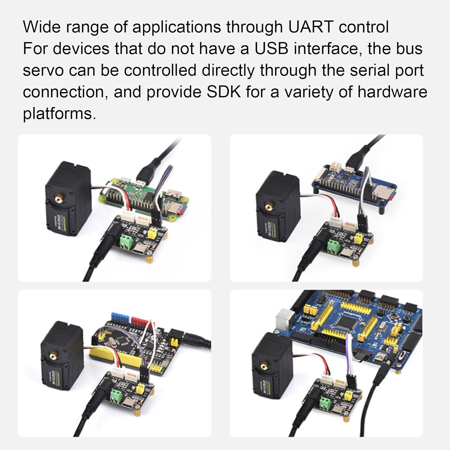 Potenza e controllo integrati: progettata specificamente per i servitori del bus seriale, questa scheda di driver integra sia le funzioni del circuito di alimentazione che di controllo, rendendola ideale vasta gamma di progetti robotici CONTROLLO SIMULTANEO DI 253 SERVO: in grado di controllare simultaneamente fino a 253 servocomandi seriali serie ST/SC, questa scheda supporta il feedback su vari parametri come posizione e velocità Circuito di controllo stabile: il circuito di controllo stabile del driver garantisce l'uso del servo, rendendolo adatto per progetti di controllo automatico a loop chiuso avanzati Design compatto e spaziale: il suo design piccolo e compatto conserva lo spazio, rendendolo ideale per l'incorporamento in progetti con elevati vincoli di spazio Opzioni di input di potenza versatili: con più interfacce di input di alimentazione, questo modulo è facile da integrare in progetti esistenti, supportando le tensioni di potenza dalla corrente continua 9-12.6V per i servos serie ST