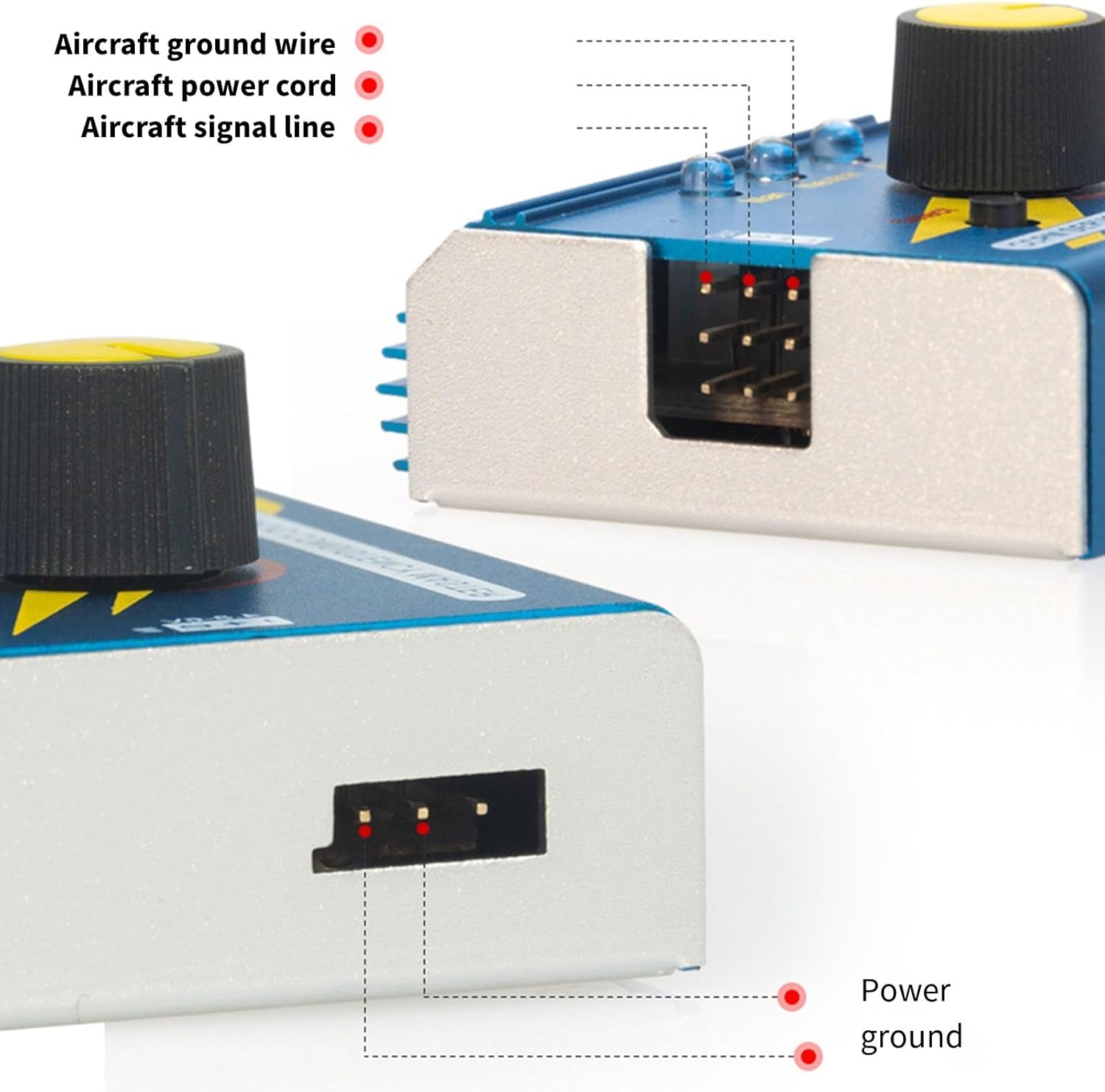 Guscio in alluminio, pieno di durata e uso prolungato. Può testare il servo analogico e digitale, controllare gli ESC (test di regolazione continua della velocità del motore) e può testare contemporaneamente se tre servo è sincronizzato. Controllato da un microcontrollore, buona stabilità e alta precisione. È facile rilevare e impostare la posizione virtuale, la vibrazione e il centro del server. Ampiamente usato in campi come modellismo, debug UAV e sviluppo di robot.