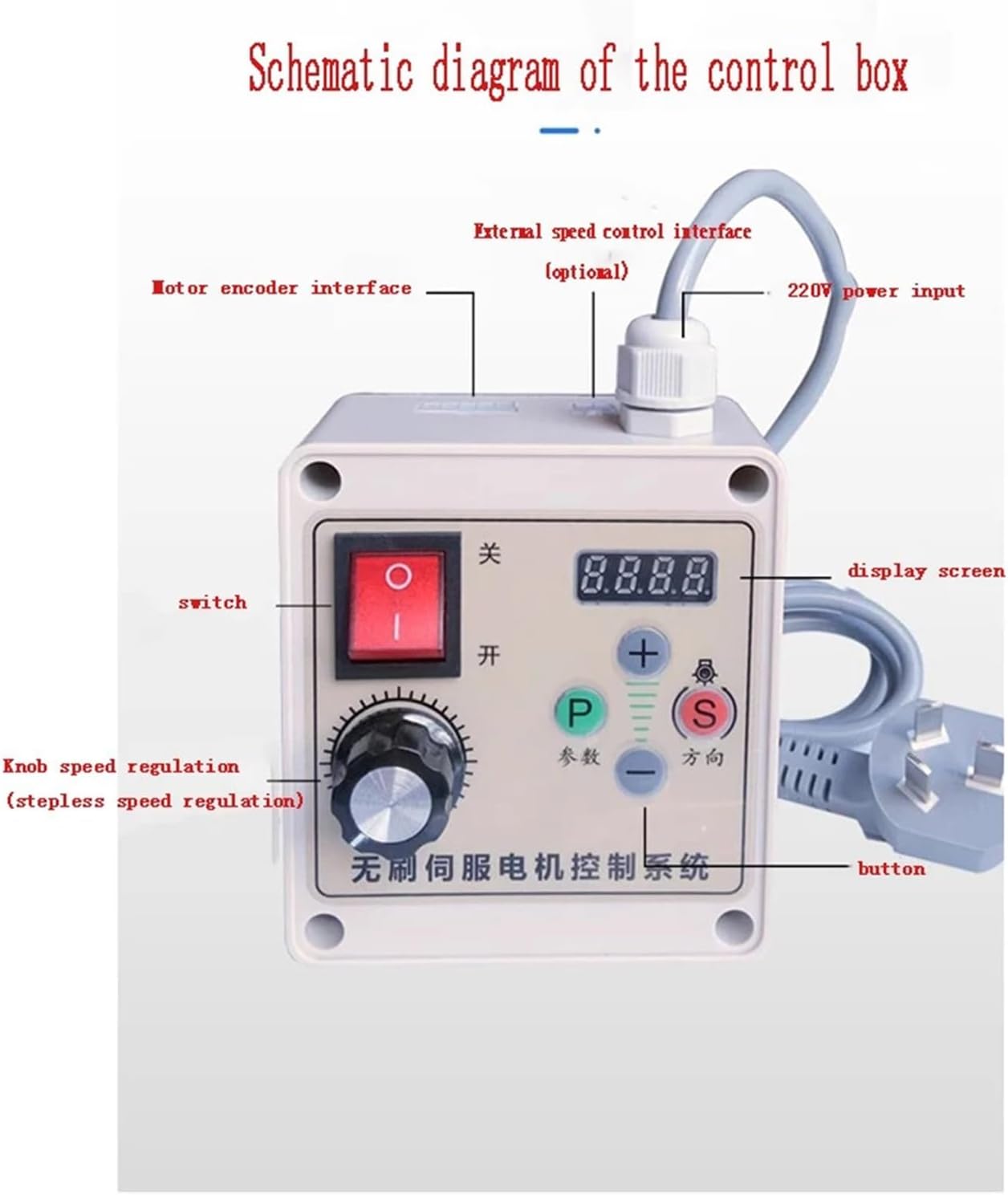 Classe di isolamento: classe F Intervallo di velocità: da 200 RPM a 3500 RPM Numero di poli del motore: 8 coppie Modalità di controllo: accensione, regolazione della velocità della manopola Modalità di protezione: sovracorrente, sovratensione e sottotensione, protezione da cortocircuito, protezione da blocco