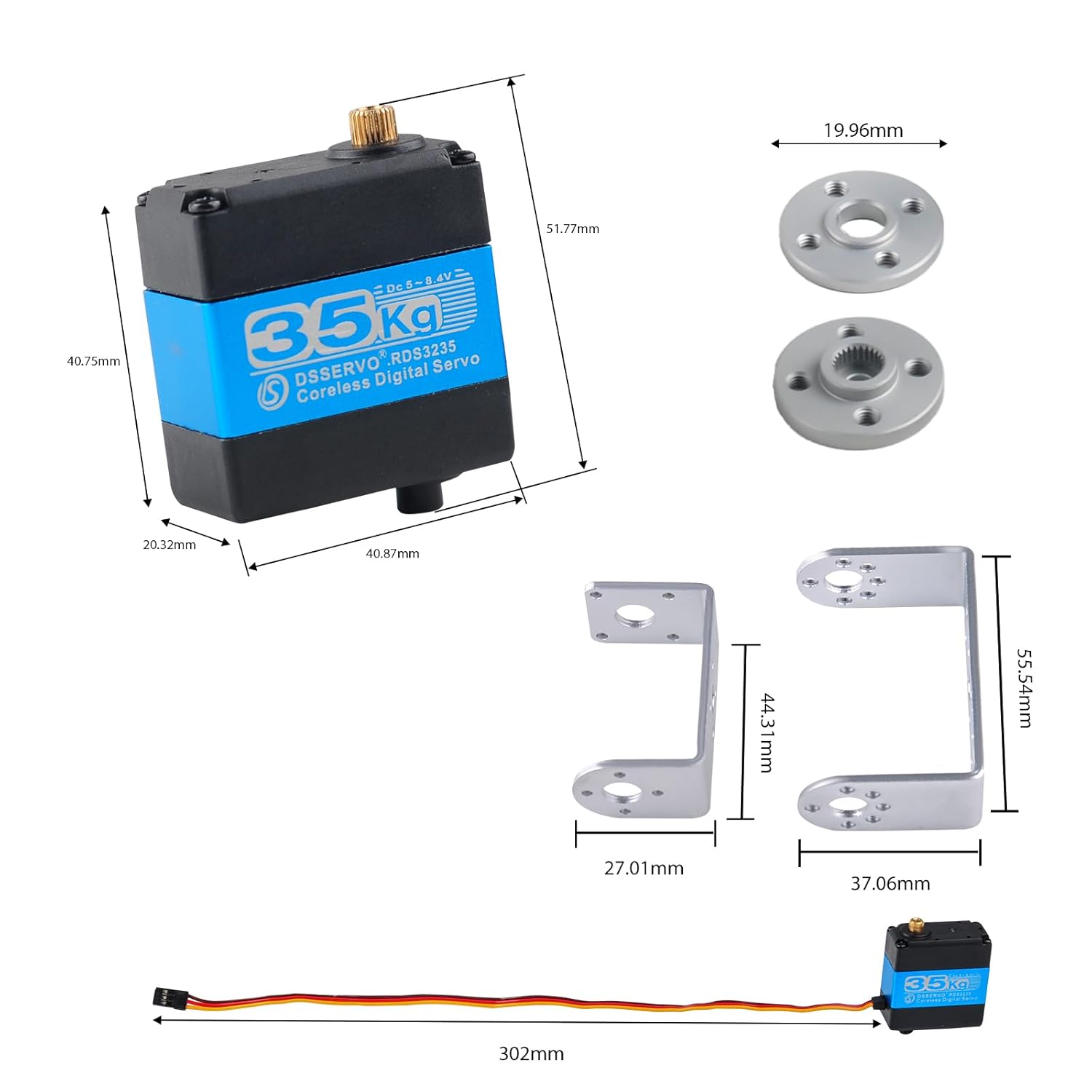 Servo digitale a due assi a 180 gradi per carichi pesanti da 35 kg con coppia elevata, alta affidabilità, buona stabilità, funzionamento regolare, molto adatto per gli appassionati di telecomando ad alte prestazioni Adottando alloggiamento in alluminio, ingranaggio in rame standard nazionale e motore coreless, ha maggiore precisione e maggiore durata, migliorando l'esperienza di controllo remoto Adatto per le esigenze di controllo remoto di robot telecomandati, automobili, camion, barche, ecc. Il controllo preciso consente angoli da 0 a 180 gradi Lista imballaggio: 2* servi digitali in metallo, 2* staffe metalliche lunghe a forma di U, 2 * staffe metalliche corte a forma di U, accessori (come mostrato in figura)