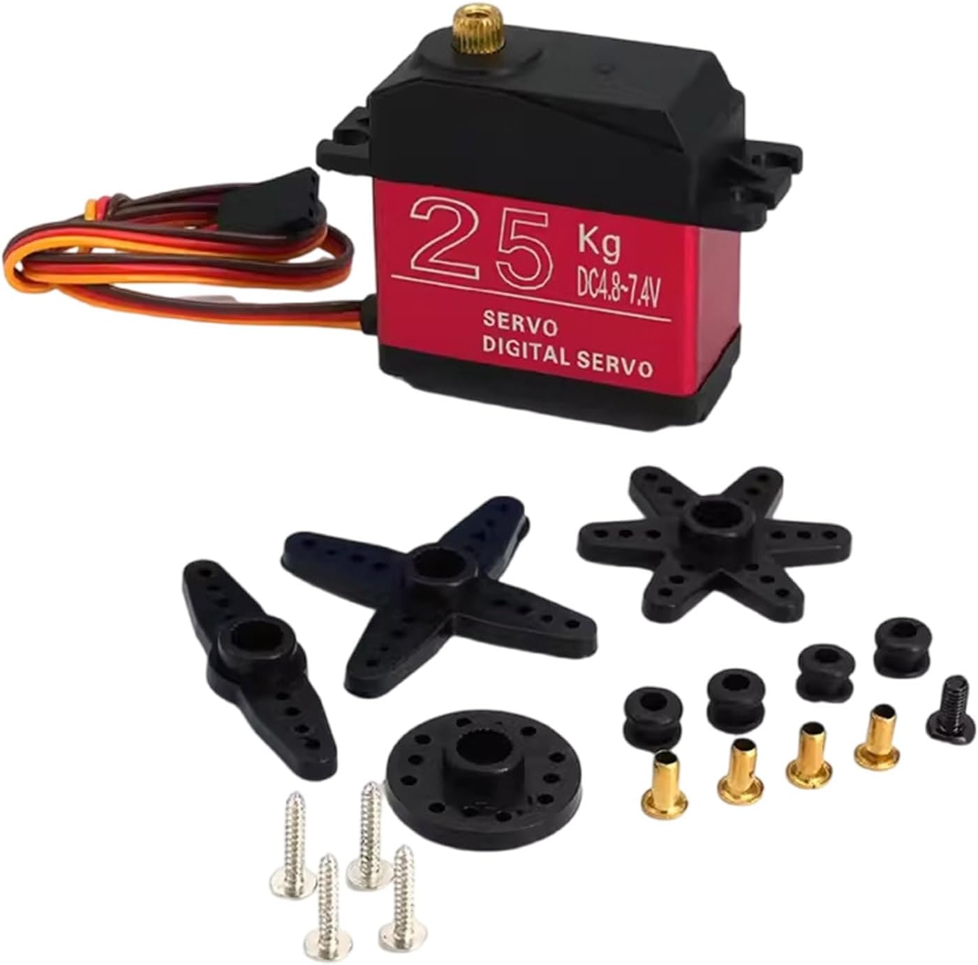 Sblocca tutto il potenziale dei tuoi modelli con il servo digitale da 25 kg, dotato di ingranaggi in metallo per coppia e durata senza rivali. Costruito per la precisione, questo servo digitale offre tempi di risposta rapidi e controlli di alta precisione con i suoi sistemi di controllo avanzati, garantendo la perfetta esecuzione dei comandi. Per gli appassionati di robotica, modellisti e hobbisti che richiedono prestazioni di coppia elevate per le loro creazioni, dai droni ai bracci robotici. Nell'applicazione, questo servomotore viene utilizzato su aerei, elicotteri, barche, veicoli e progetti, migliorando la precisione del movimento su varie piattaforme. Migliora la funzionalità del tuo progetto con un servomotore da 25 kg, dove la tecnologia all'avanguardia incontra l'affidabilità, garantendo un funzionamento regolare anche negli ambienti più esigenti.