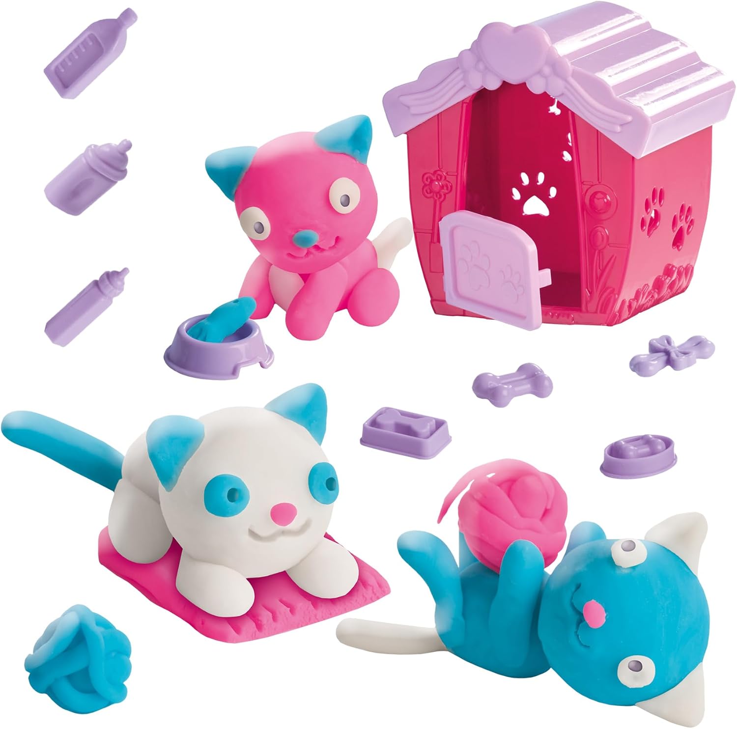Scopri il set di plastilina con una simpatica cuccia per gatti e fantastici accessori per un divertimento extra! Il set contiene plastilina super lavabile, senza glutine in azzurro, rosa e bianco (90 g) – ideale per le mani dei bambini piccoli. I bambini possono creare i propri gattini e giocare nell'accogliente cuccia per gatti e inventare storie. Dotato di strumenti di modellazione e istruzioni, il set promuove la creatività e le capacità motorie nei bambini. Perfetto per vivere la fantasia: progetta, impastare e giocare con i tuoi gattini fatti in casa nella tua casa!