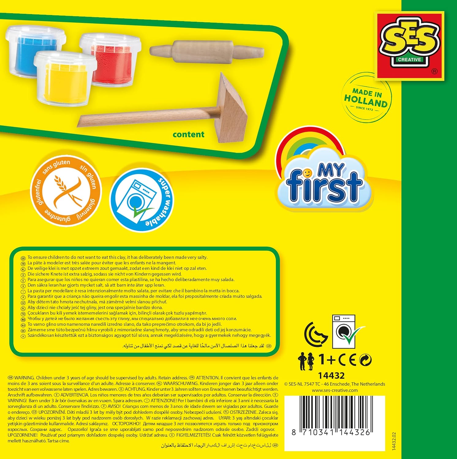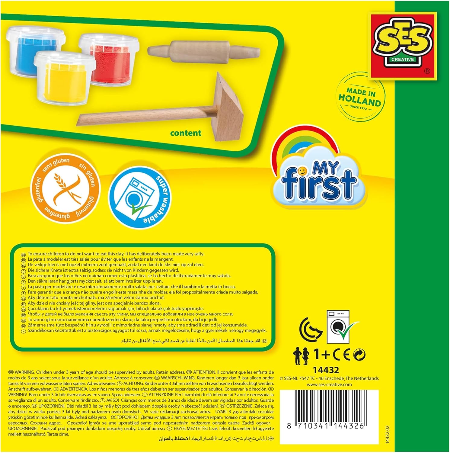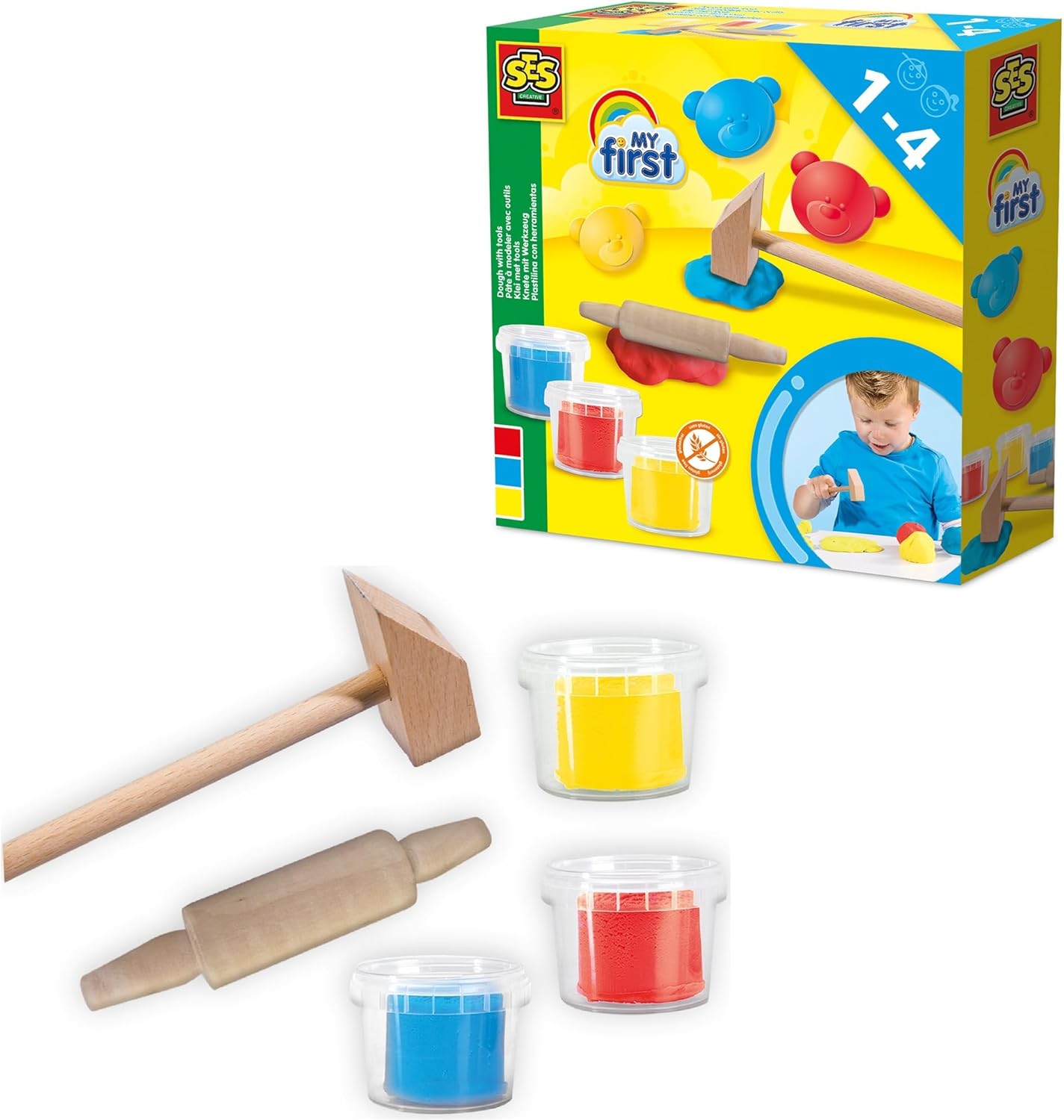 CREATIVITÀ PER I PIÙ PICCOLI: la pasta da gioco My First di SES Creative è stata sviluppata appositamente per i bambini dai 12 mesi in su: colori vivaci, consistenza morbida e accessori adatti ai bambini invitano alla scoperta giocosa. FORMULA SICURA PER I BAMBINI: L'impasto è privo di glutine, ipoallergenico e altamente salato per prevenire il soffocamento. Rimane morbido, malleabile e confortevole per le mani dei bambini piccoli. NON SI ASCIUGA DURANTE IL GIOCO: Grazie alla sua speciale consistenza, la pasta da modellare rimane elastica e non si secca anche dopo un uso prolungato - per un divertimento duraturo e senza frustrazioni CON STRUMENTI ADATTI AI BAMBINI: Il set contiene 3 barattoli di vernice (rosso, giallo, blu), un martelletto e un mattarello - appositamente modellati per le mani piccole per sviluppare giocosamente la motricità fine e la coordinazione durante l'allenamento FACILE DA PULIRE E SOSTENIBILE: La pasta da modellare può essere facilmente rimossa dai tessuti e è prodotto in Europa in modo CO₂ neutro - un'ottima idea regalo Plastilina da 12 mesi per un gioco pulito con consapevolezza ambientale PRODOTTI REALIZZATI NEI PAESI BASSI: SES Creative produce tutti gli articoli nella fabbrica di Enschede dal 1972 - per qualità e sicurezza. I nostri giocattoli sono lavabili, sicuri, ipoallergenici, senza glutine e al 100% a zero emissioni di carbonio.