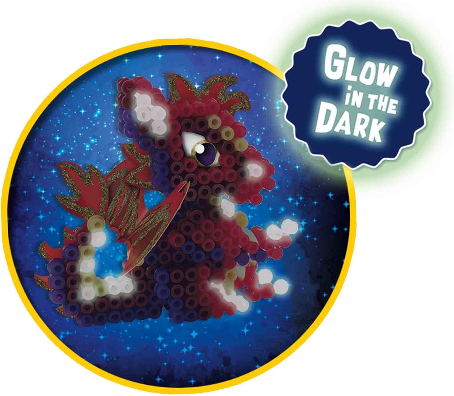| Pièces incluses | Colle, Dragons en carton, Feuille à repasser, Panneau perforé carré, Sac avec 1800 perles à repasser |