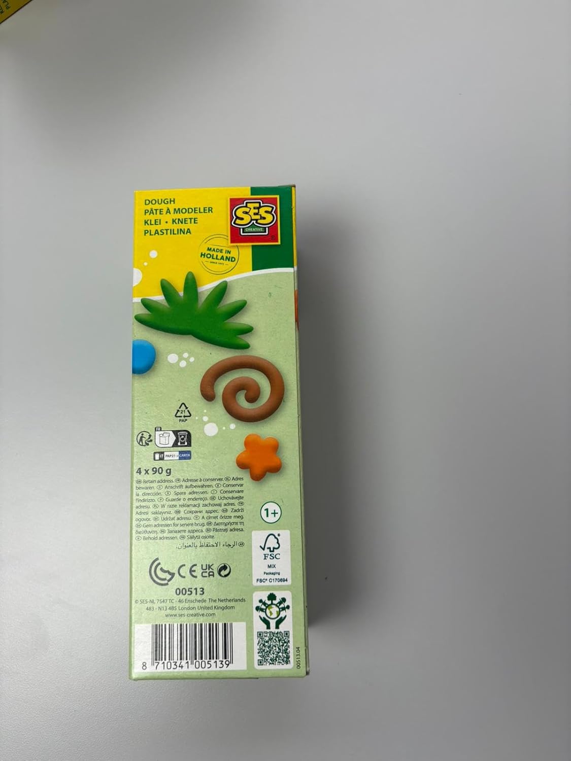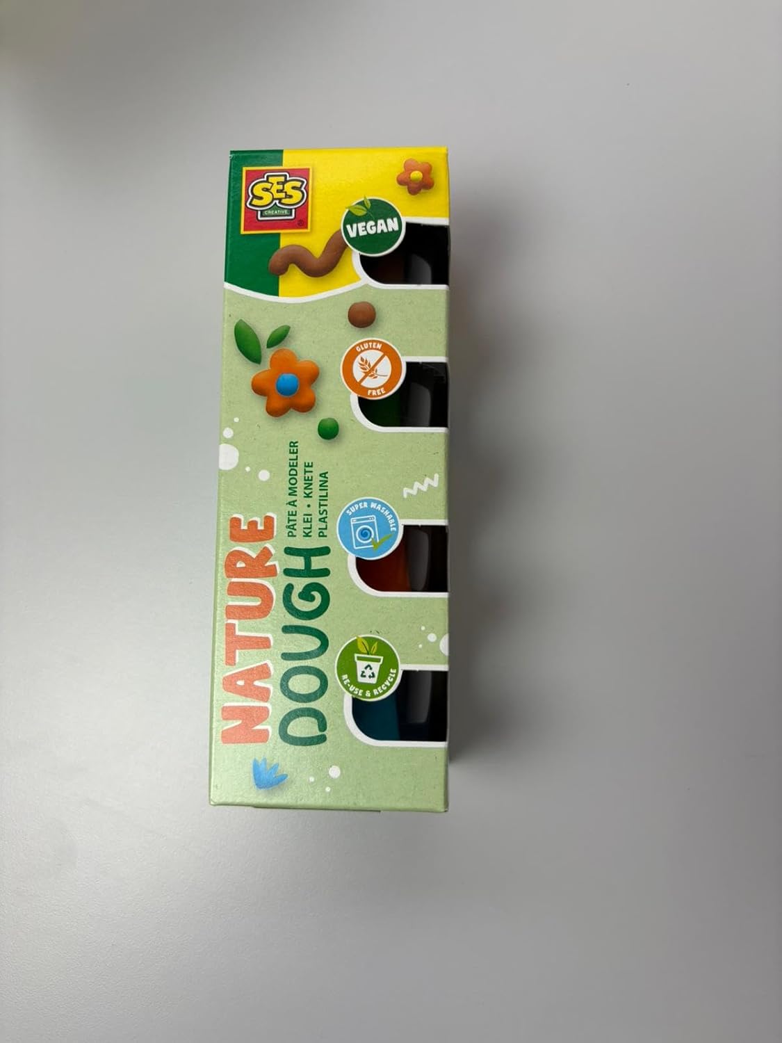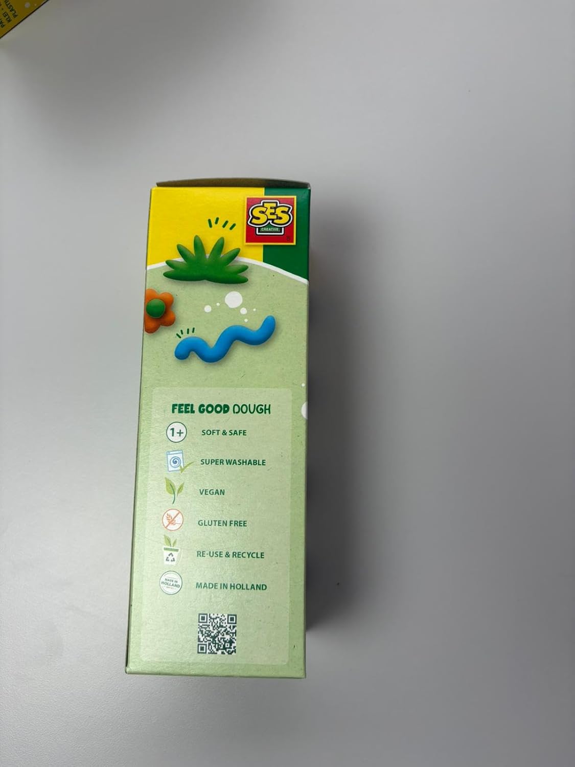 PASTA DA PLASTICA COLORATA PER BAMBINI: Scopri la pasta da modellare Feel Good di SES Creative con i suoi quattro colori ispirati alla natura: verde, azzurro, arancione e marrone. Permette ai bambini di divertirsi sviluppando la loro creatività e le capacità motorie a partire da 1 anno FORMULA VEGANA E SENZA GLUTINE: Progettata appositamente per essere sicura per i bambini piccoli, questa pasta modellabile è priva di glutine e vegana. La sua consistenza è estremamente salata per scoraggiare l'ingestione, garantendo tranquillità ai genitori e consentendo ai bambini di giocare in sicurezza NON SI ASCIUGA E SI LAVA FACILMENTE: A differenza di altre plastiline, questa versione è morbida e non si secca durante il gioco. Facile da pulire, si rimuove facilmente da tessuti e superfici, rendendo l'esperienza di gioco piacevole e senza preoccupazioni per i genitori CONFEZIONE RICHIUDIBILE E VASI RIUTILIZZABILI: Questa pasta da modellare è arrivata in una pratica confezione con un codice QR che permette di scoprire idee creative. I vasetti sono privi di piccoli elementi e riutilizzabili, garantendo una conservazione ottimale dell'impasto dopo ogni utilizzo. IDEA REGALO BAMBINI DA 1 ANNO: Offri questa pasta da modellare creativa e colorata ai più piccoli per stimolare la loro fantasia e motricità. Perfetto per compleanni, Natale o qualsiasi altra occasione, questo gioco manuale è un'attività molto divertente per i bambini piccoli