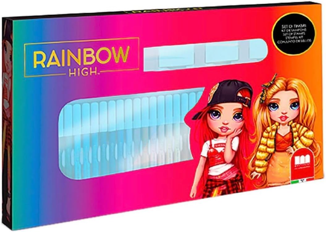 Confezione contenente: 3 timbri in legno,36 pennarelli , 1 inchiostro blu lavabile, 1 album da colorare