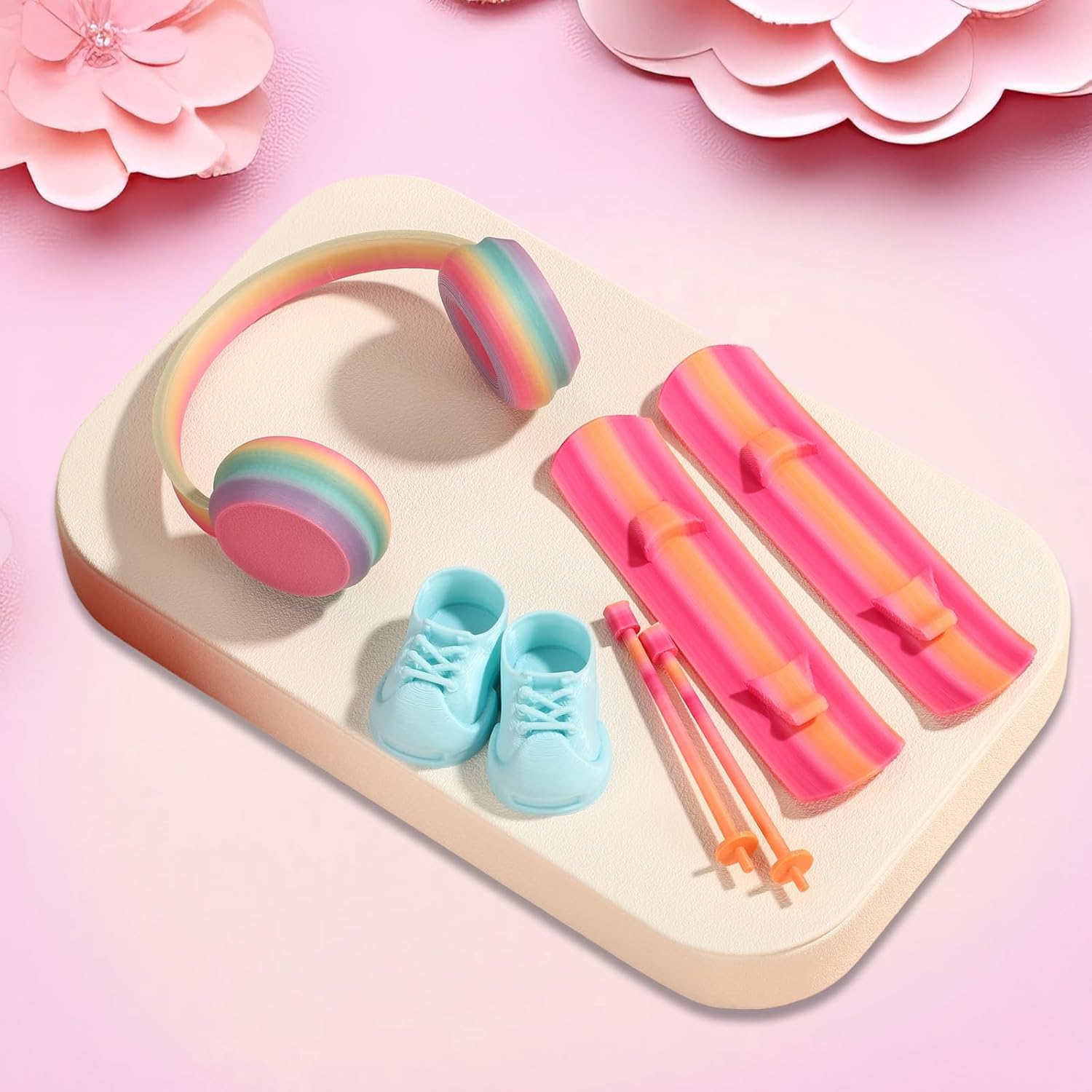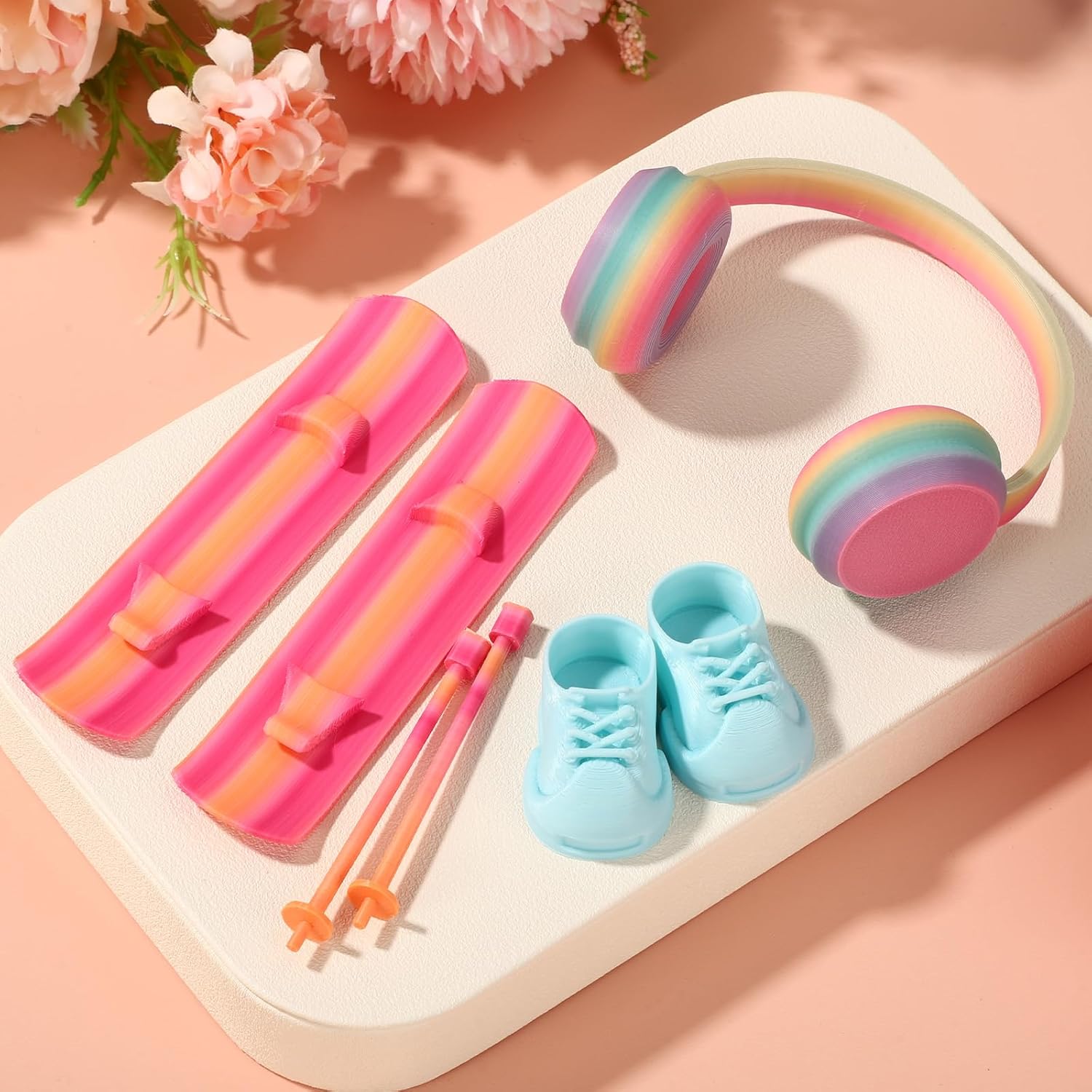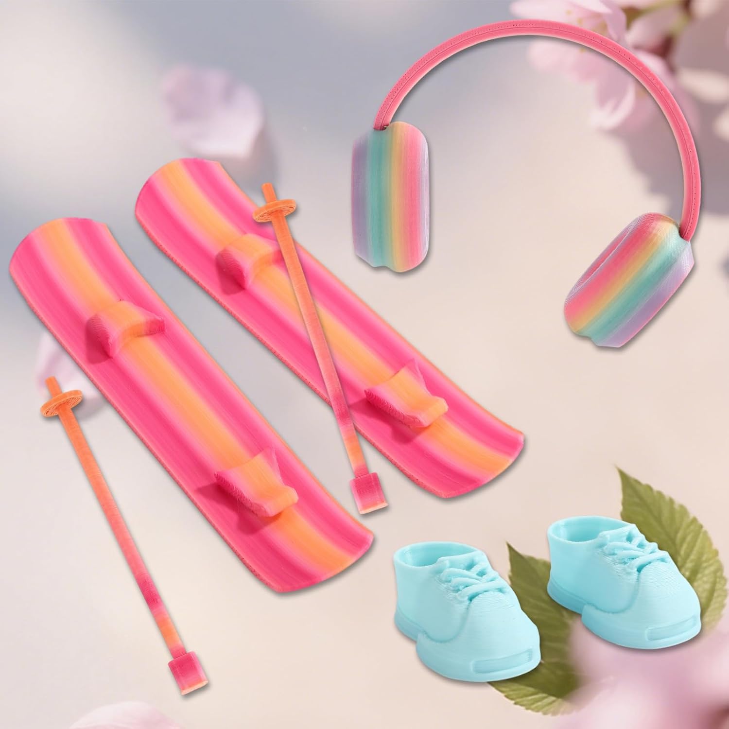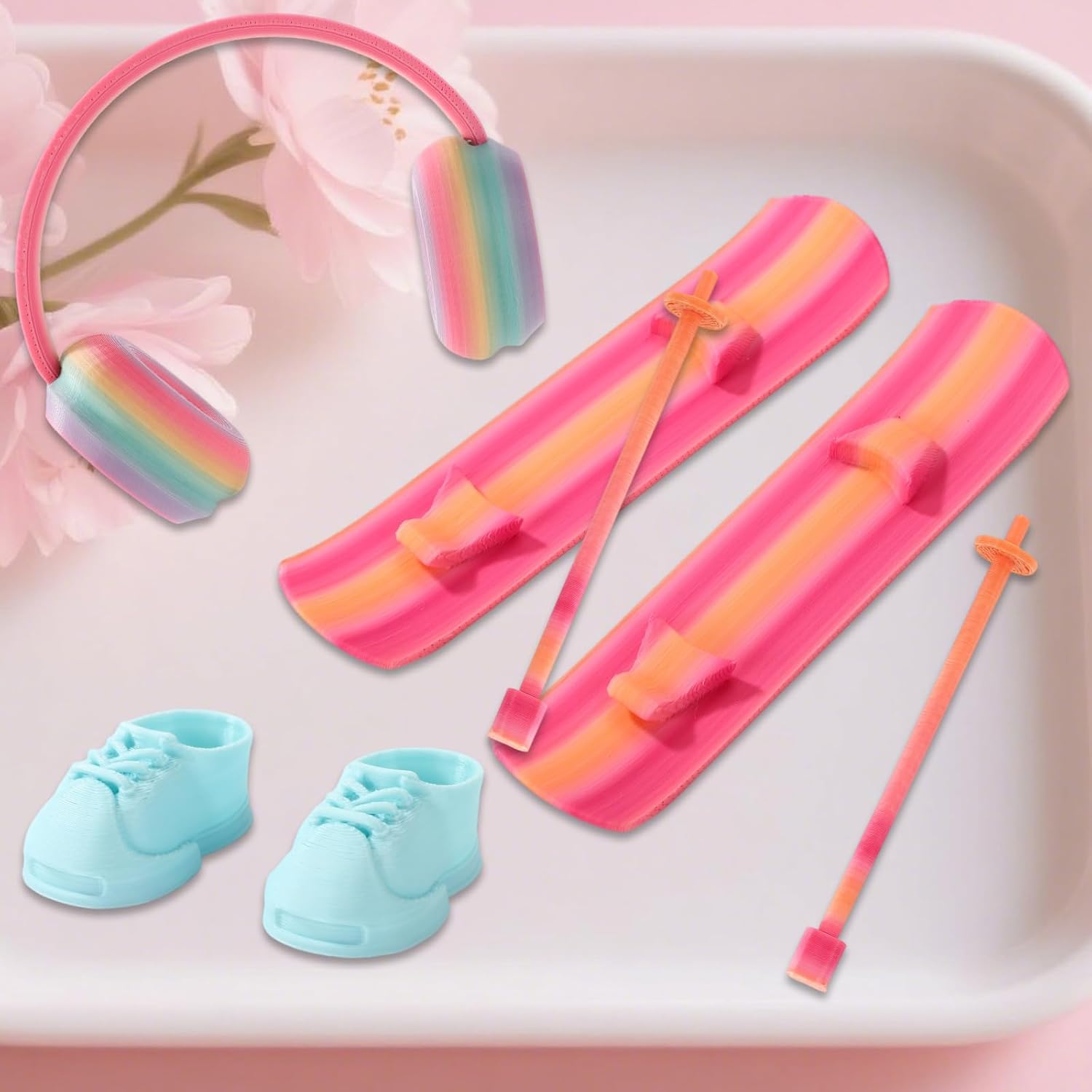 Set di accessori per sci completo: dai alla tua bambola un restyling pronto invernale con questo set di attrezzature da sci, tra cui 1 paio di sci, 1 paio di pali da sci, 1 paio di scarpe e 1 paio di cuffie. (Bambola non inclusa) Progettato per bambole da 17 cm: progettato per adattarsi alle bambole da 17 cm, questo set funziona perfettamente con la maggior parte delle bambole di dimensioni simili, offrendo una vestibilità sicura e migliorando le opzioni di gioco e di visualizzazione. Look elegante e realistico: con colori vivaci e design realistico, questi accessori portano un tema di sport invernali divertente e alla moda nella collezione della tua bambola, perfetto per scene innevate, servizi fotografici o giochi fantasiosi. Scelta regalo ideale: un ottimo regalo per bambini, collezionisti o amanti delle bambole per compleanni, vacanze o qualsiasi occasione. Questo set aggiunge carattere e creatività a qualsiasi guardaroba per bambole. Divertimento e funzionale: ottimo per le configurazioni stagionali di gioco di tutti i giorni o a tema. Incoraggia la creatività e fornisce ore di intrattenimento interattivo.