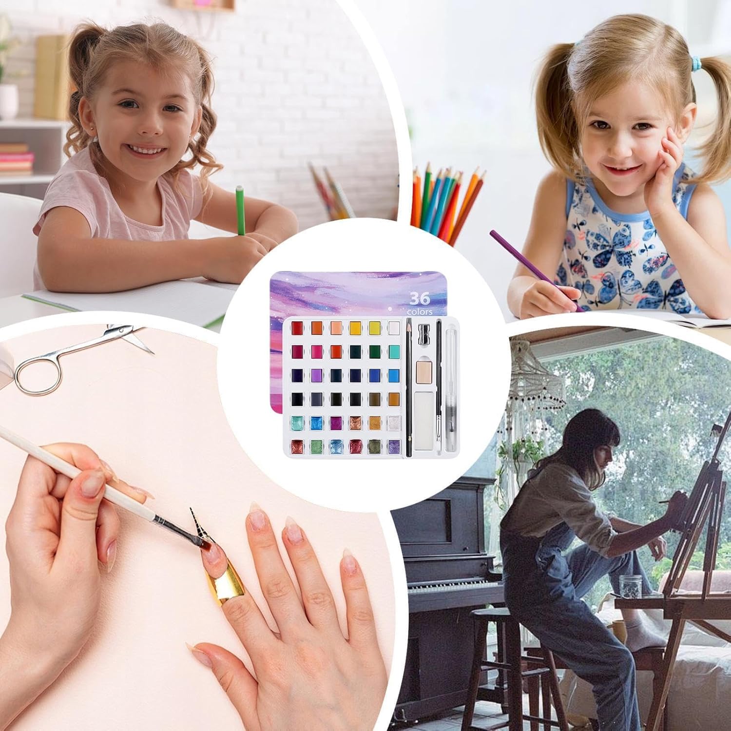 Impiego Diffuso: I colori ad acqua funzionano come affidabile strumento artistico per aula, consentendo applicazione senza sforzo per graffiti di viaggio e schizzi all'aperto, favorendo creatività in ambienti come caffè, garantendo versatilità per uso artistico educativo e informale Regalo Ideale: Questo set di colori a tempera è la scelta perfetta per le feste, permette ai bambini di esplorare il loro lato artistico con ore di divertimento coinvolgente, ideale per occasioni speciali come compleanni e celebrazioni stagionali Pratico da Trasportare: Con il suo design compatto e funzionale, questo set di acquerelli per adulti offre accesso immediato alla creatività ovunque ci si trovi, unendo praticità e mobilità per dipingere in modo spontaneo durante viaggi, escursioni nella natura o spostamenti quotidiani, grazie alle dimensioni ridotte che si adattano a borse e zaini Espressione Artistica: La combinazione di toni perlati e opachi offre effetti cromatici stratificati, favorendo sperimentazione da illustrazioni dettagliate ad arte astratta. I pigmenti innovativi supportano stili diversificati in contesti creativi amatoriali e semiprofessionali. Impieghi creativi: Grazie a questi acquarelli è possibile esplorare tecniche di colorazione manuale e pittura ad , ideali per dare vita a biglietti artistici, personalizzare journal e aggiungere dettagli unici alla con facilità e precisione in ogni progetto