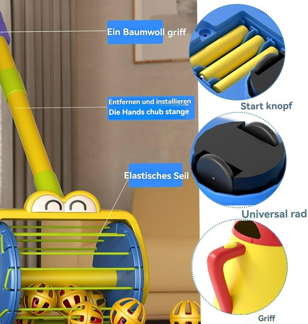 【Educativo】------ Giocattolo a spinta per bambini. Sviluppa il senso dell'equilibrio corporeo, migliora la coordinazione occhio-mano e sviluppa le capacità motorie fini 【Giocattolo per bambini】------- Un grazioso giocattolo che non occupa spazio e diverte i bambini. Un aspirapolvere per bambini che funziona 【Gioco sicuro】------ Il nostro set giocattolo aspirapolvere a sfera è realizzato in plastica sicura, inodore, senza sbavature e ha una superficie liscia. Nessun problema di graffiare le mani dei bambini, gioco sicuro e divertente 【Forma carina】------ Modello a spinta per bambini che imparano a tirare i giocattoli. Incoraggia il tuo bambino a muovere i primi passi con questo giocattolo a spinta 【Evitamento automatico degli ostacoli】------ La ruota universale cambia automaticamente direzione quando incontra ostacoli, permettendo al tuo bambino di muoversi facilmente in casa e migliorare la coordinazione del corpo