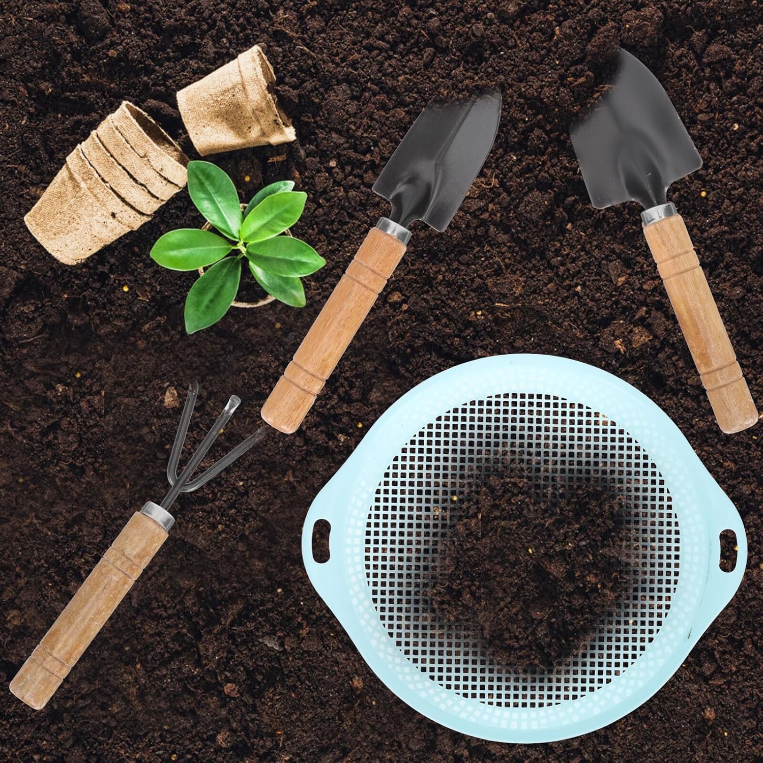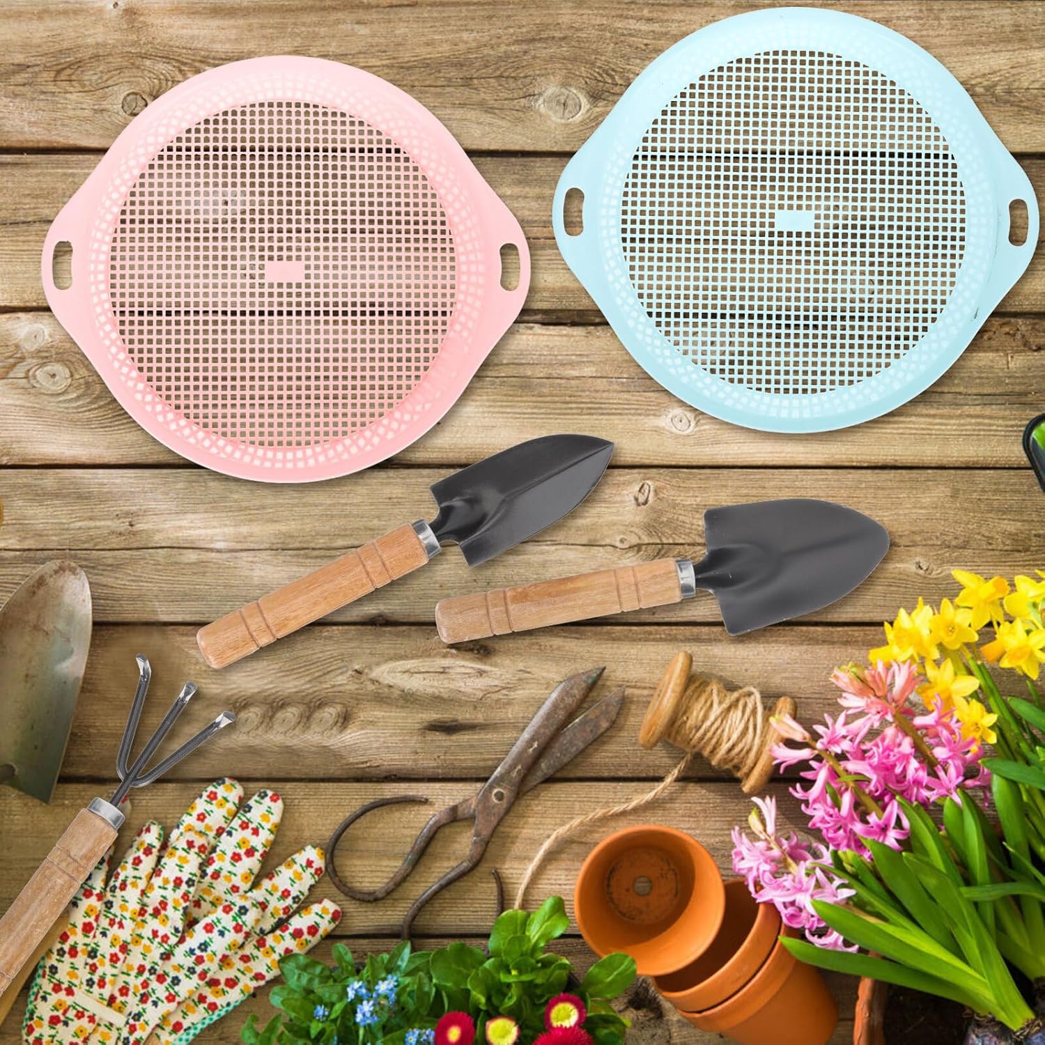 Rastrello da giardino: ottimo per piantare, diserbare, trapiantare bonsai, ecc., pratico per le forniture quotidiane di giardinaggio, setaccio per il terreno per giardinaggio Mini rastrello per terreno da giardino: può essere utilizzato per trapiantare, piantare, allentare il terreno, verdure e piantine, attrezzo da giardino Paletta per terreno: può lavorare facilmente diversi tipi di terreno, rendendo la semina e lo scavo molto più facili, attrezzi da giardino per diserbare Attrezzi da giardino manuali: di dimensioni compatte, facili da usare, ottimi per l'applicazione di piante in vaso e piante da giardino, attrezzi per il giardino Setacci per terreno: questi strumenti multifunzionali hanno una forte praticità, adatti per giardino, cortile, parco, ecc., utensili manuali da giardinaggio