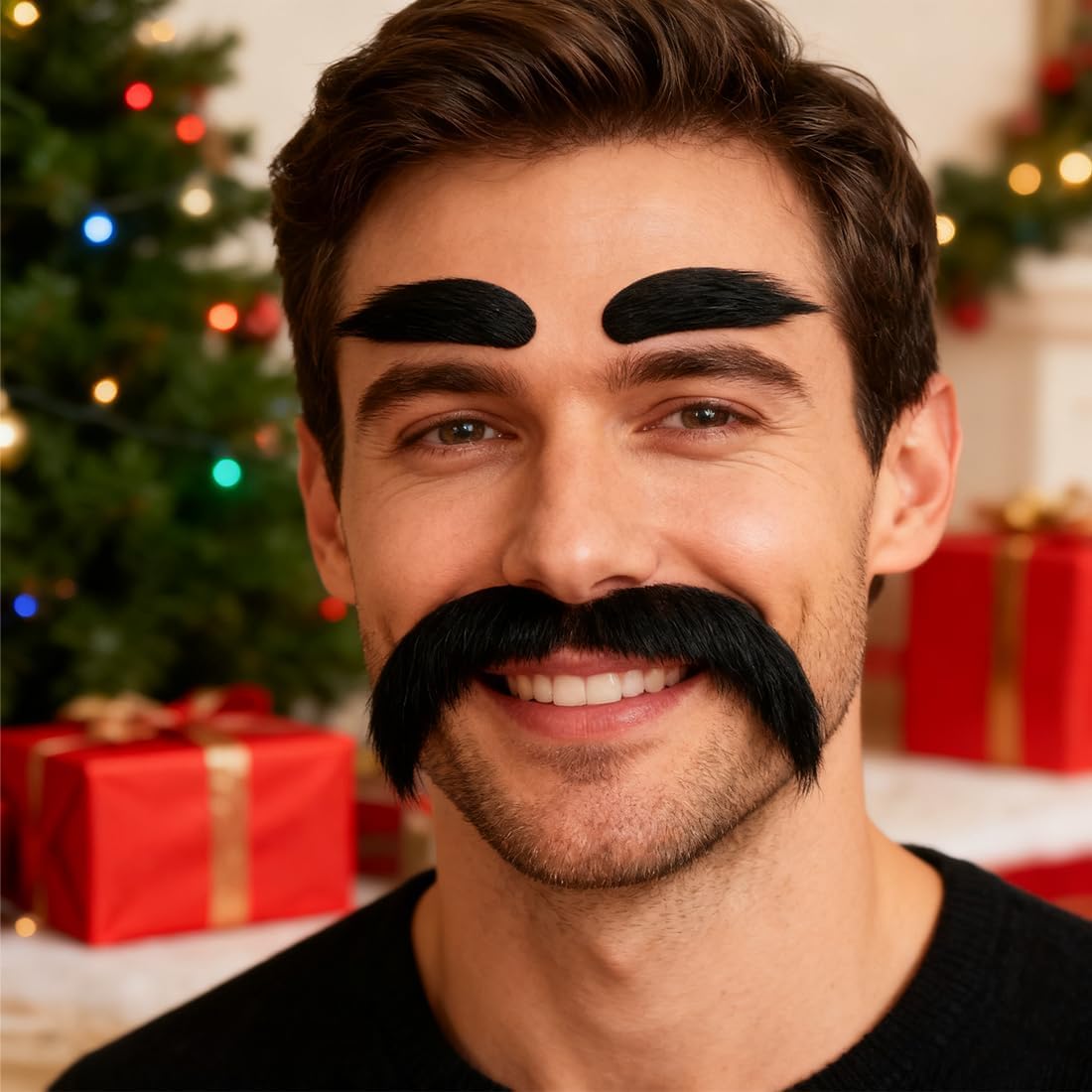 Design realistico: Il baffo e le sopracciglia finte presentano uno stile dettagliato e realistico, perfetto per ricreare il personaggio desiderato. Trasformati in un attimo in una figura affascinante, cattura l'attenzione di tutti e diventa il protagonista di ogni festa, per momenti indimenticabili e tanto divertimento Materiali di alta qualità: Realizzati con fibre sintetiche selezionate con cura, i baffi e le sopracciglia artificiali offrono una sensazione piacevole al tatto e una lunga durata. Progettati con attenzione ai dettagli, garantiscono un aspetto realistico e sono sicuri e confortevoli per tutte le età Taglia unica flessibile: I baffi e le sopracciglia autoadesivi si adattano alla maggior parte degli adulti e sono ideali per tutta la famiglia. Con dimensioni di 15 x 10 cm per i baffi e 9 cm per le sopracciglia, possono essere facilmente ritagliati per adattarsi perfettamente al tuo viso Facile da applicare: Grazie al retro autoadesivo, i baffi e le sopracciglia artificiali si applicano e si rimuovono con facilità. Basta staccare il nastro biadesivo, applicarlo e godere di una tenuta sicura per ore. Con nastro adesivo ricaricabile, possono essere riutilizzati più volte Perfetti per costumi: Questo set di baffi e sopracciglia finte aggiunge un tocco divertente e originale a qualsiasi costume. Ideale per feste in maschera, eventi cosplay o come accessorio spiritoso, garantisce risate e buon umore in ogni occasione
