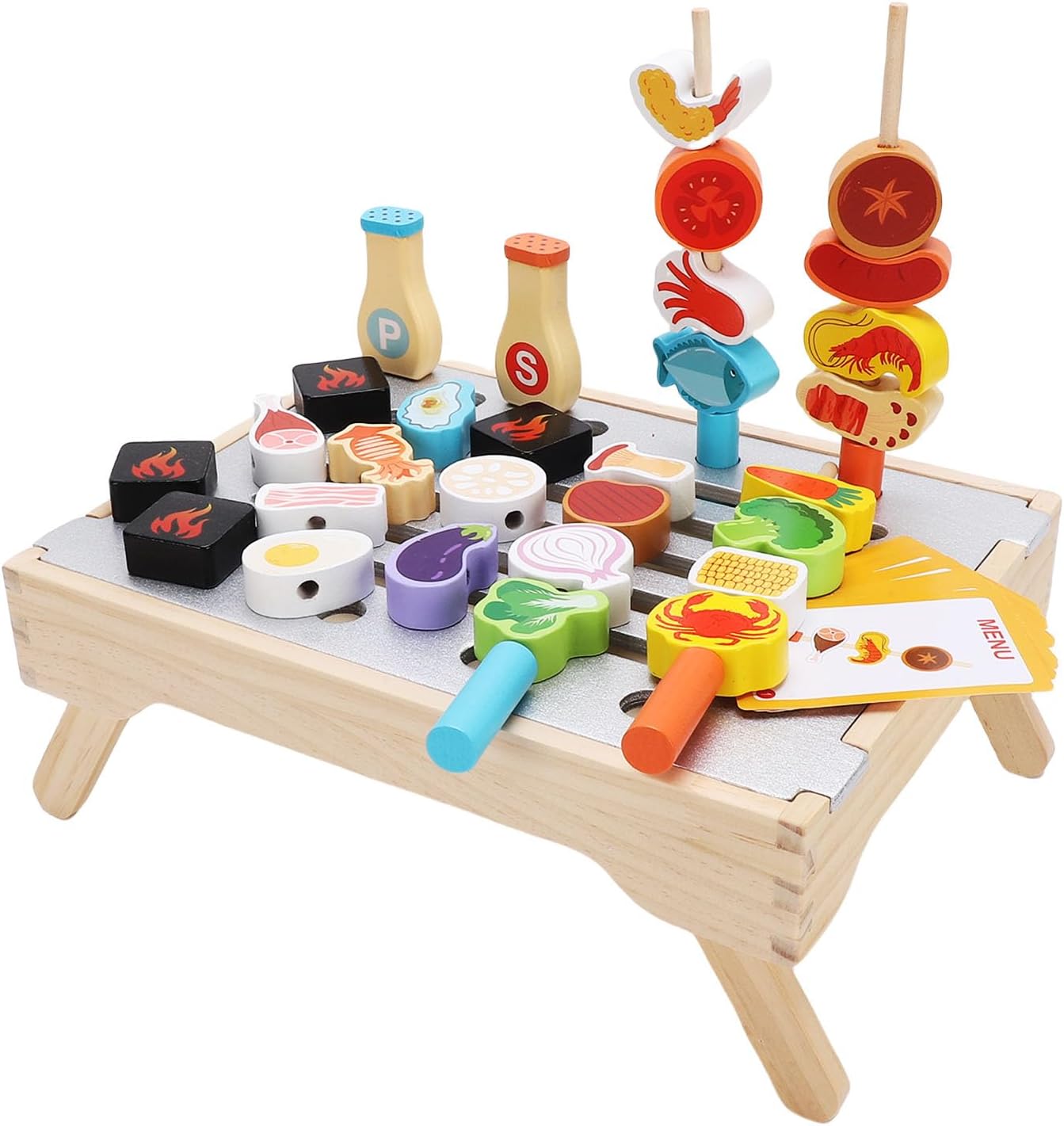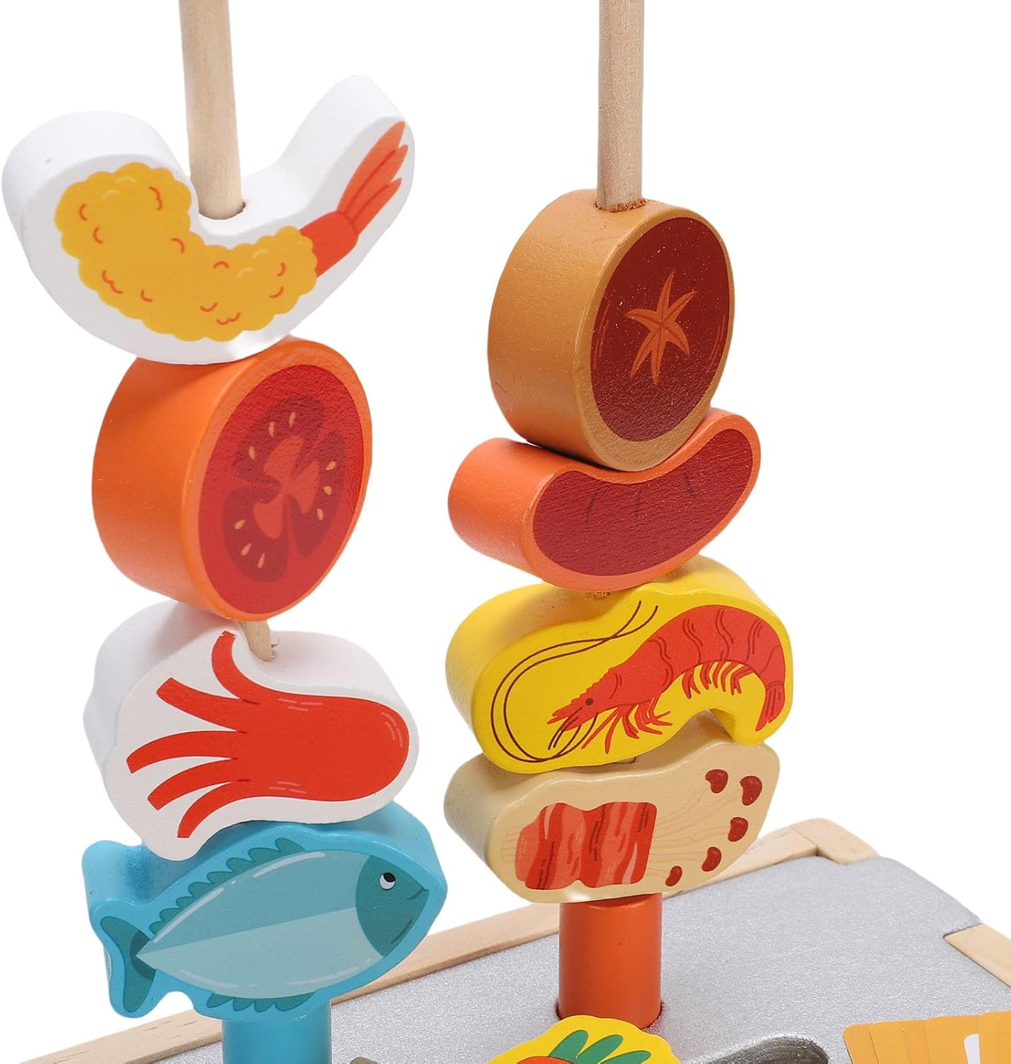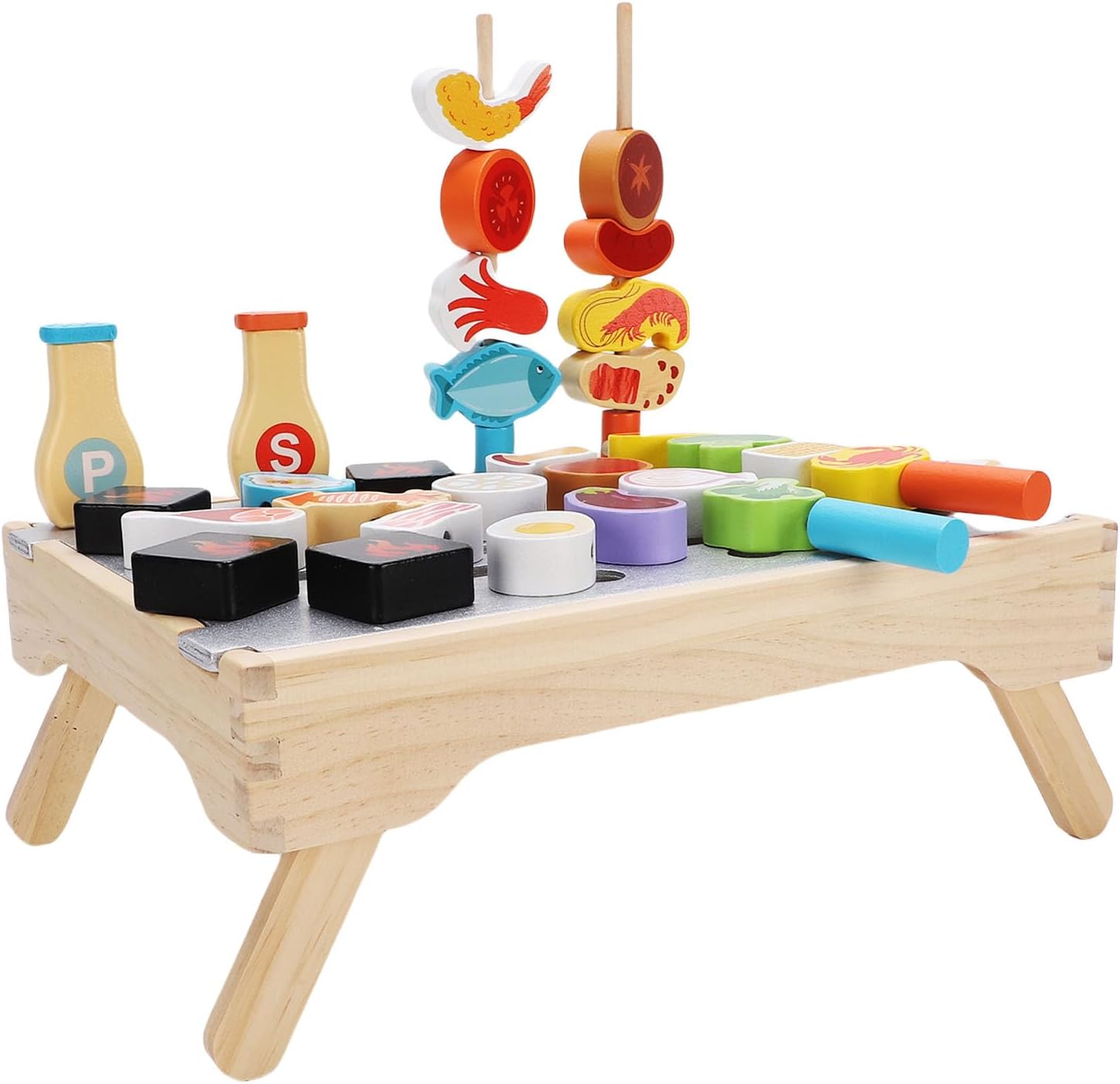 [DESIGN REALISTICO DELLA GRIGLIA PER BARBECUE IN LEGNO] Imita una vera griglia da cucina con dettagli autentici, ispirando giochi di ruolo fantasiosi e barbecue sicuri all'aperto al chiuso. [COSTRUZIONE IN LEGNO DI GOMMA] Realizzata in legno di gomma naturale con superfici lisce e prive di schegge per un gioco senza preoccupazioni. [ESPERIENZA DI CUCINA INTERATTIVA] Presenta spiedini realistici e accessori per griglia per migliorare le abilità pratiche e comprendere i processi di cottura. [GIOCATTOLO EDUCATIVO PER LO SVILUPPO] Aiuta i bambini a conoscere il cibo, i colori e i numeri mentre sviluppano abilità cognitive essenziali come l'ordinamento e l'abbinamento. [INCORAGGIA L'INTERAZIONE SOCIALE] Promuove il legame genitore-figlio e il gioco di gruppo, promuovendo lo sviluppo del linguaggio e le abilità sociali attraverso il gioco di ruolo cooperativo al barbecue.