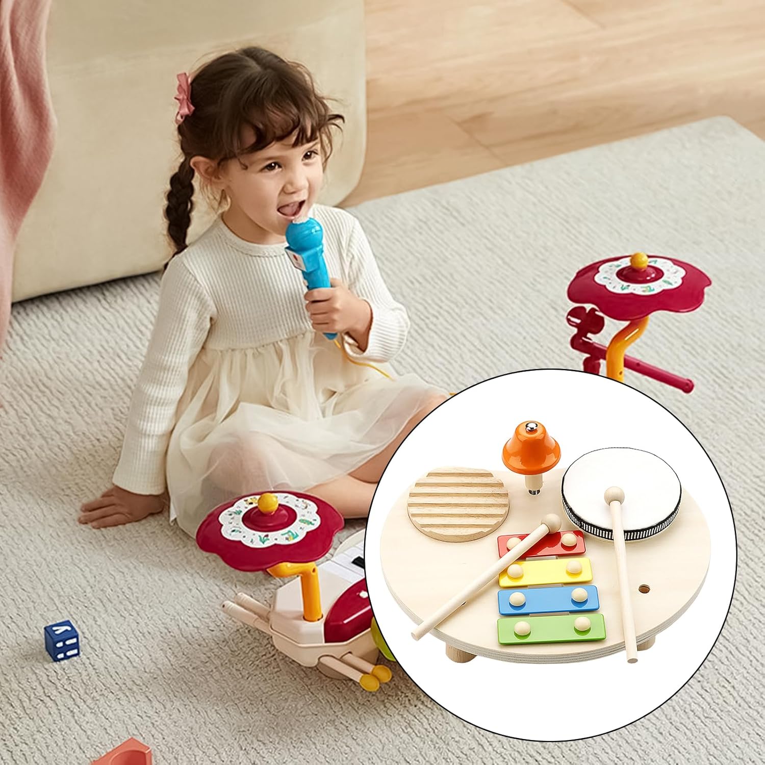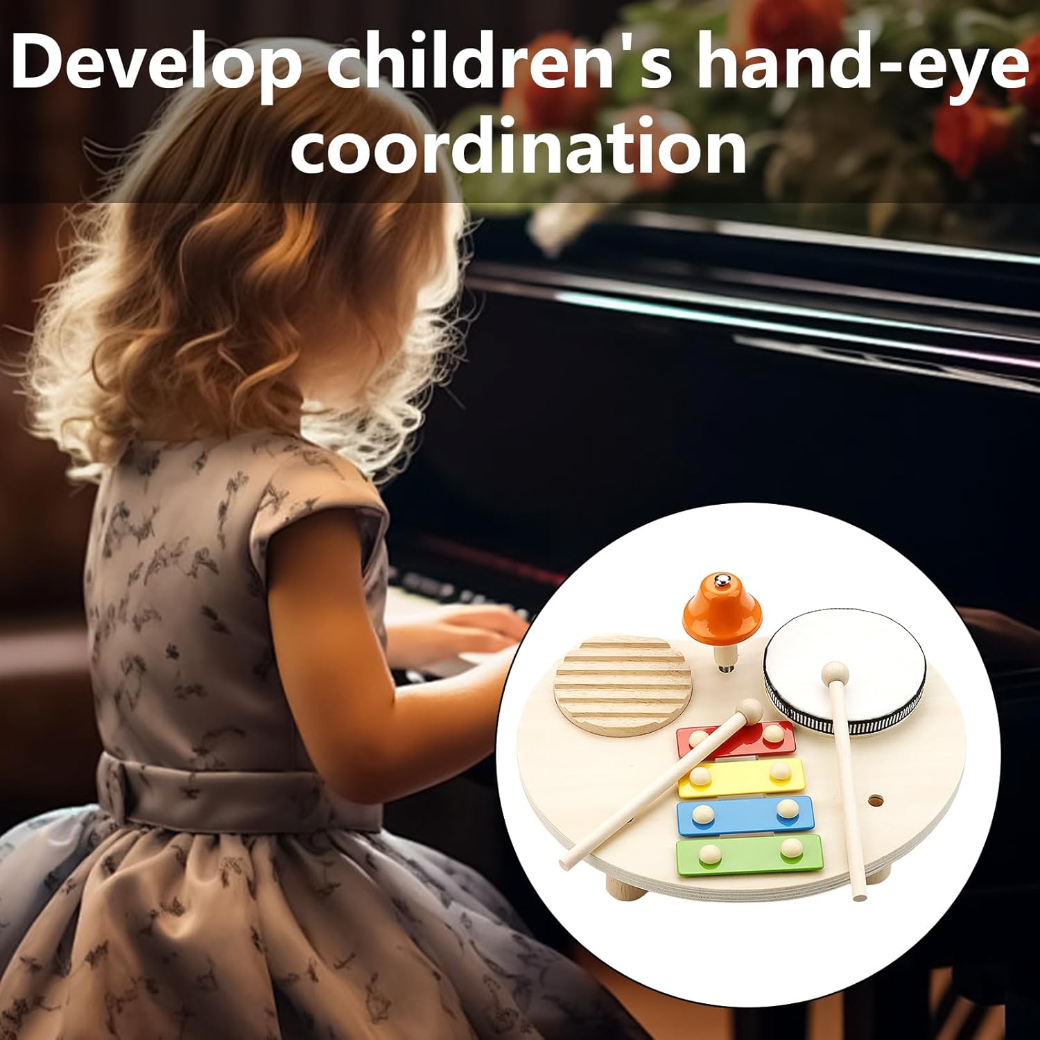 Realizzato in legno e metallo, questo set giocattoli presenta serie strumenti, ottimi per gioco collaborativo e per migliorare la coordinazione occhio-mano Scatena potenziale musicale tuo figlio con nostro set batteria per bambini, un kit musicale in legno progettato per favorire la creatività e lo sviluppo sensoriale nella mente Questo giocattolo educativo sensoriale per bambini è un regalo eccellente, incoraggiando l'esplorazione e l'espressione attraverso la produzione suoni gioiosi Che tratti divertimento in famiglia, apprendimento interattivo o intrattenimento, questo set sarà sicuramente un successo in ogni occasione in cui i bambini riuniscono per esplorare e imparare Ottimo per ragazzi e ragazze, questo giocattolo educativo è un modo fantastico per introdurre i più piccoli alle gioie della musica e del ritmo, ponendo le basi per la musica