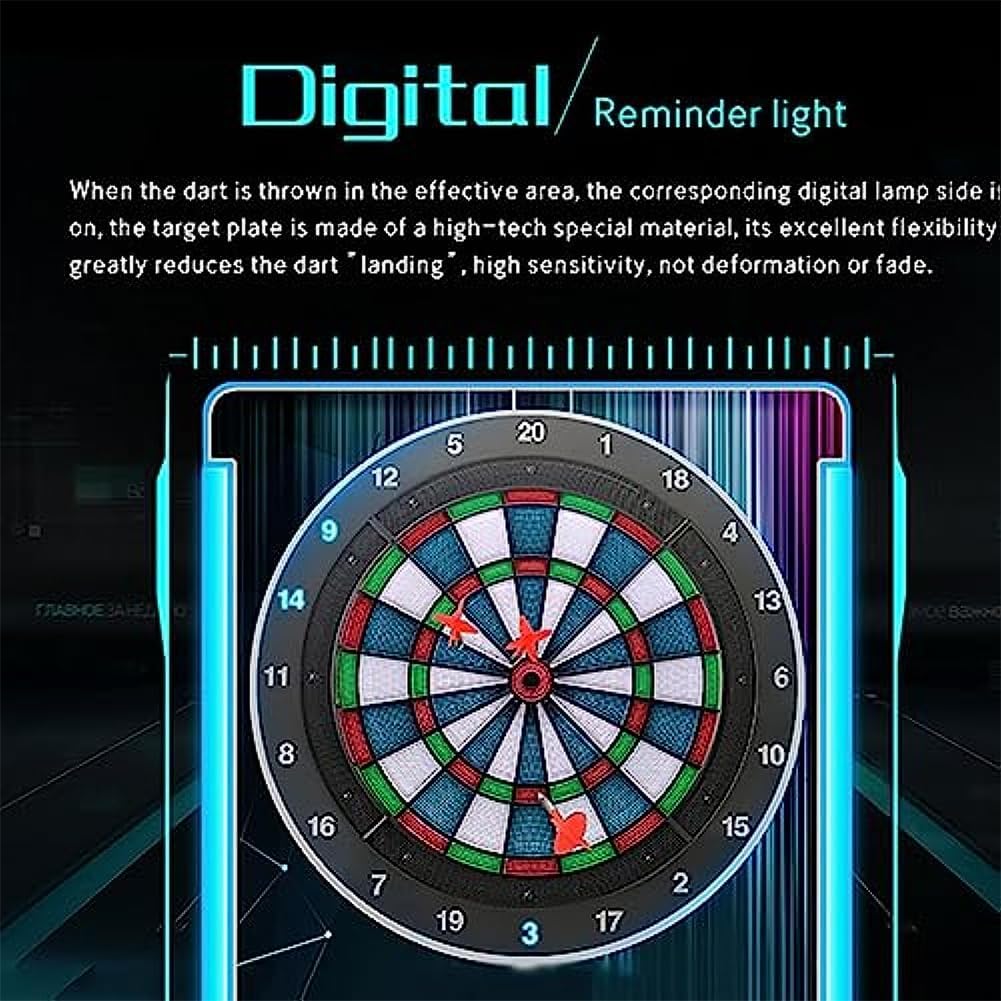 Ampio display LCD con 26 giochi di freccette integrati, opzioni di lingua multipla e connettività Internet per un gameplay vario. Tavola digitale a tutto tondo con dimensioni di 47 cm, materiale high-tech per ridurre il rimbalzo, alta sensibilità e durata. Facile installazione con fori rinforzati per chiodi per il montaggio a parete, consentendo un posizionamento flessibile in varie posizioni. Adatto per diversi ambienti come case, bar, ristoranti, club e palestre, promuovendo la coordinazione occhio-mano e la sportività. Può ospitare fino a 4 giocatori, ideale per feste e serate di gioco, catering sia per principianti che per professionisti.