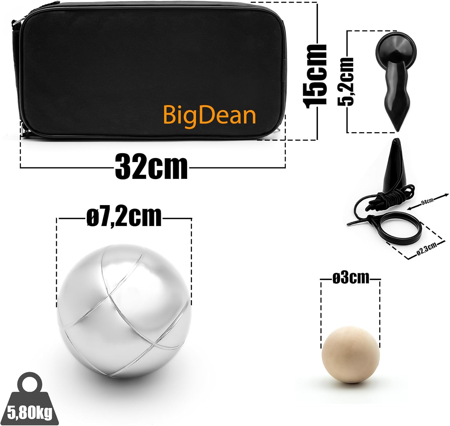 | enthaltene Komponenten | 14 eiliges Boule Set |