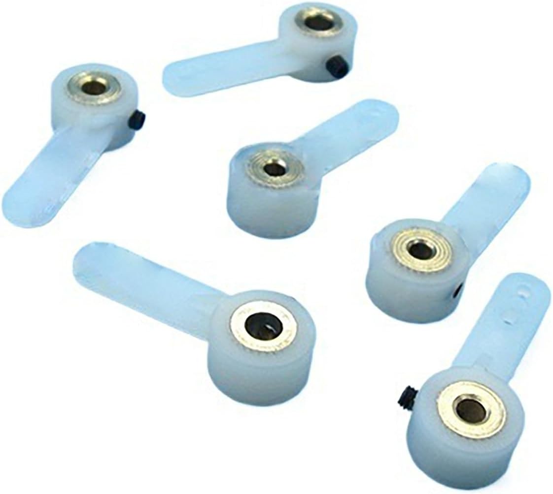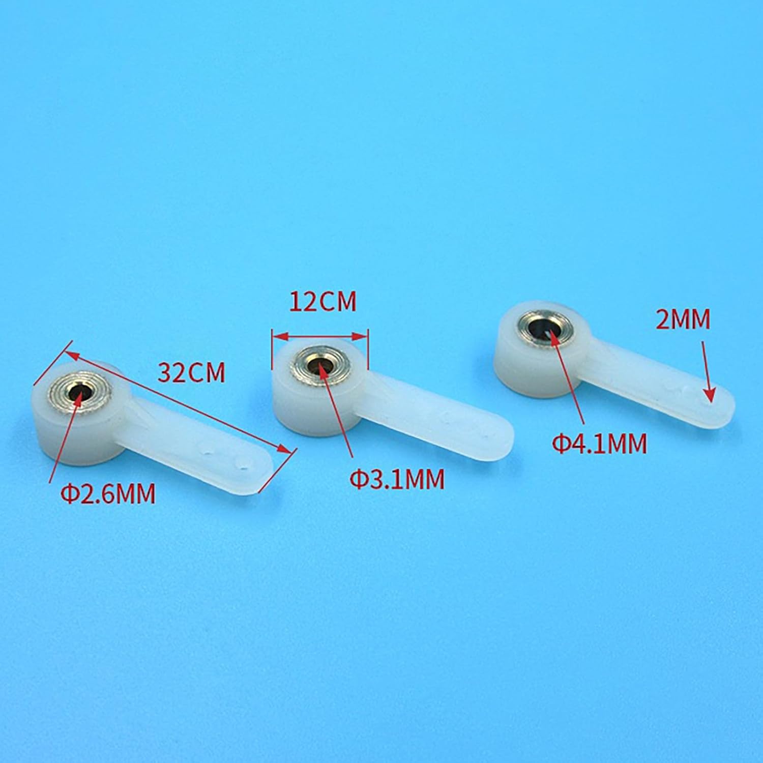 Set di bracci sterzanti RC for aerei e barche Include 3 bracci con 3 viti di fissaggio M3 Compatibile con servomotori da 2,6 mm, 3,1 mm e 4,1 mm Ideale for carrelli di atterraggio o sistemi di controllo del timone Bracci lunghi 32 mm con fori di collegamento da 2 mm