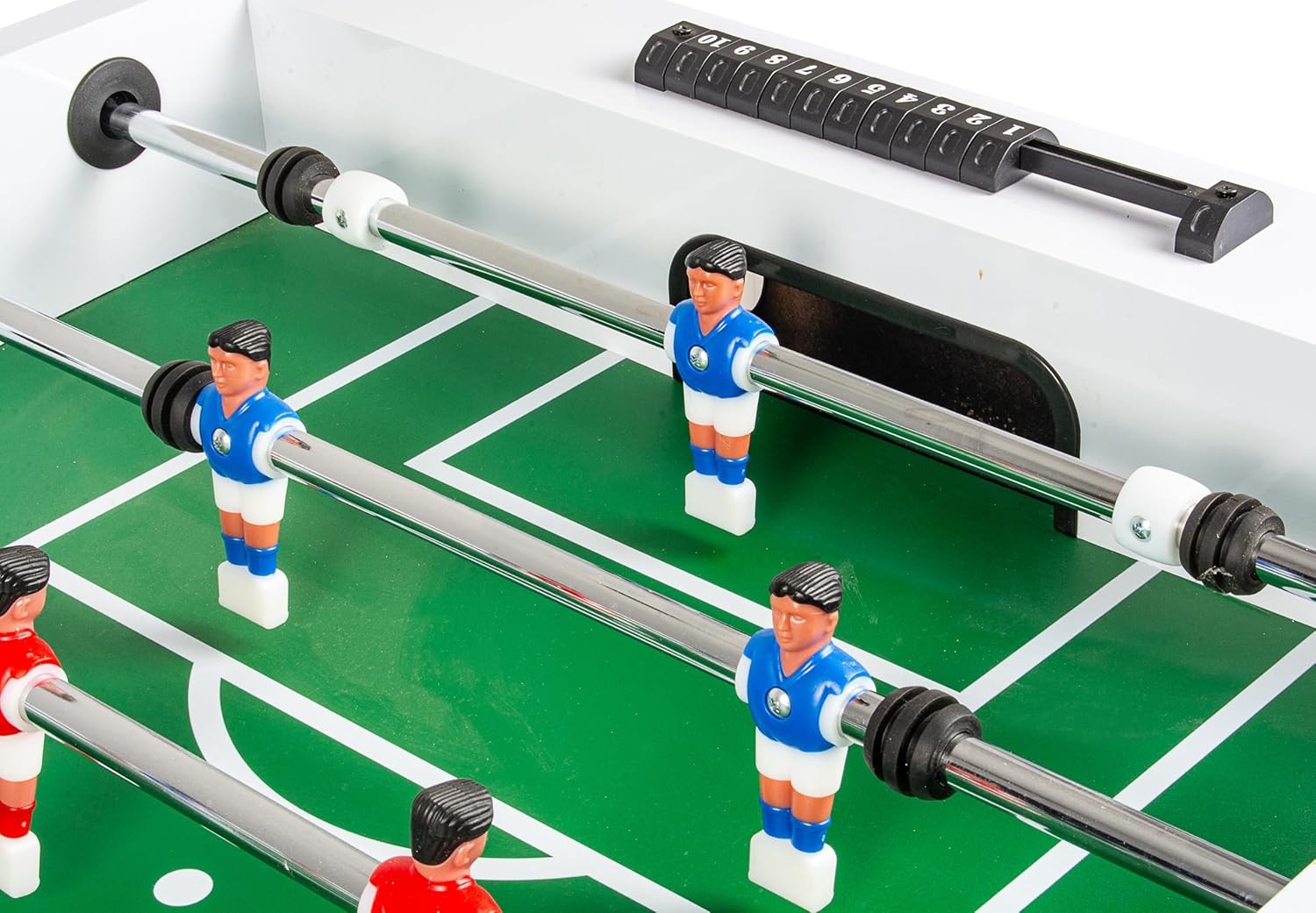 ⚽ Design elegante in bianco e nero: calcio balilla elegante che si adatta a qualsiasi interno: perfetto per la casa e l'ufficio! 🏆 Costruzione Robusta: Realizzata in robusto MDF con lati spessi 23 mm per la massima stabilità e resistenza agli urti. 🕹️ Controllo preciso del gioco: ogni giocatore controlla 11 pezzi di gioco in blu e rosso per partite emozionanti. 🔩 Aste da gioco di alta qualità: aste da gioco lunghe 115 cm e resistenti con diametro di 1,6 cm garantiscono movimenti fluidi e un controllo eccellente. 🎉 Pronto per giocare: include 2 palline da gioco: basta disimballare e iniziare! 📏 Grandi dimensioni per una vera esperienza di gioco: dimensioni del tavolo 140 x 76 x 85 cm, campo di gioco 120 x 68 cm - per un'autentica esperienza di gioco. 💙 Assemblaggio: Prodotto da montare, istruzioni incluse. Consegnato in due pacchi. Adatto a partire dagli 8 anni in su.