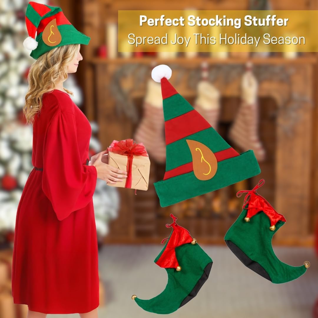 Che si tratti di feste di Natale, Capodanno, eventi cosplay o come regalo originale per amici e parenti, questo set di cappello da elfo e copriscarpe porta l'allegria natalizia e un tocco festoso