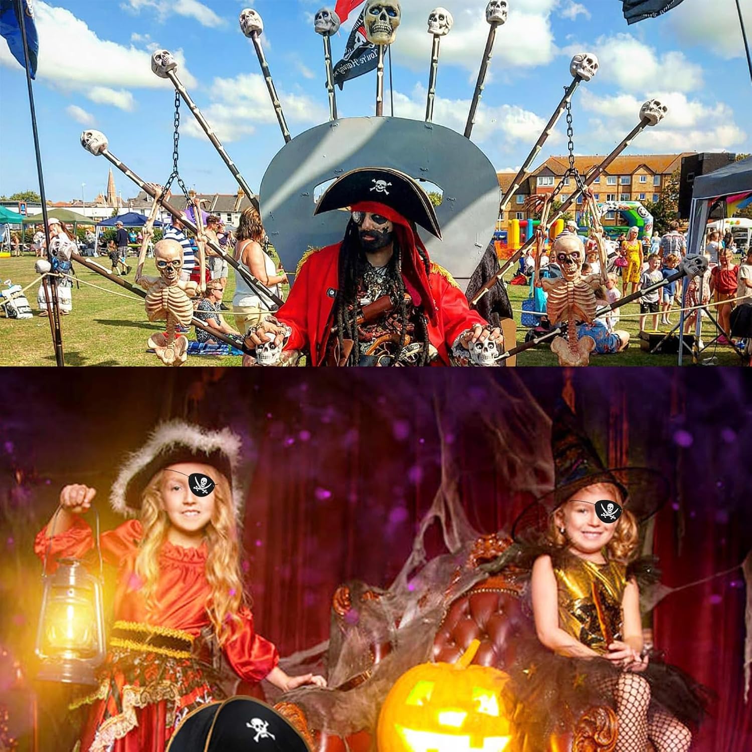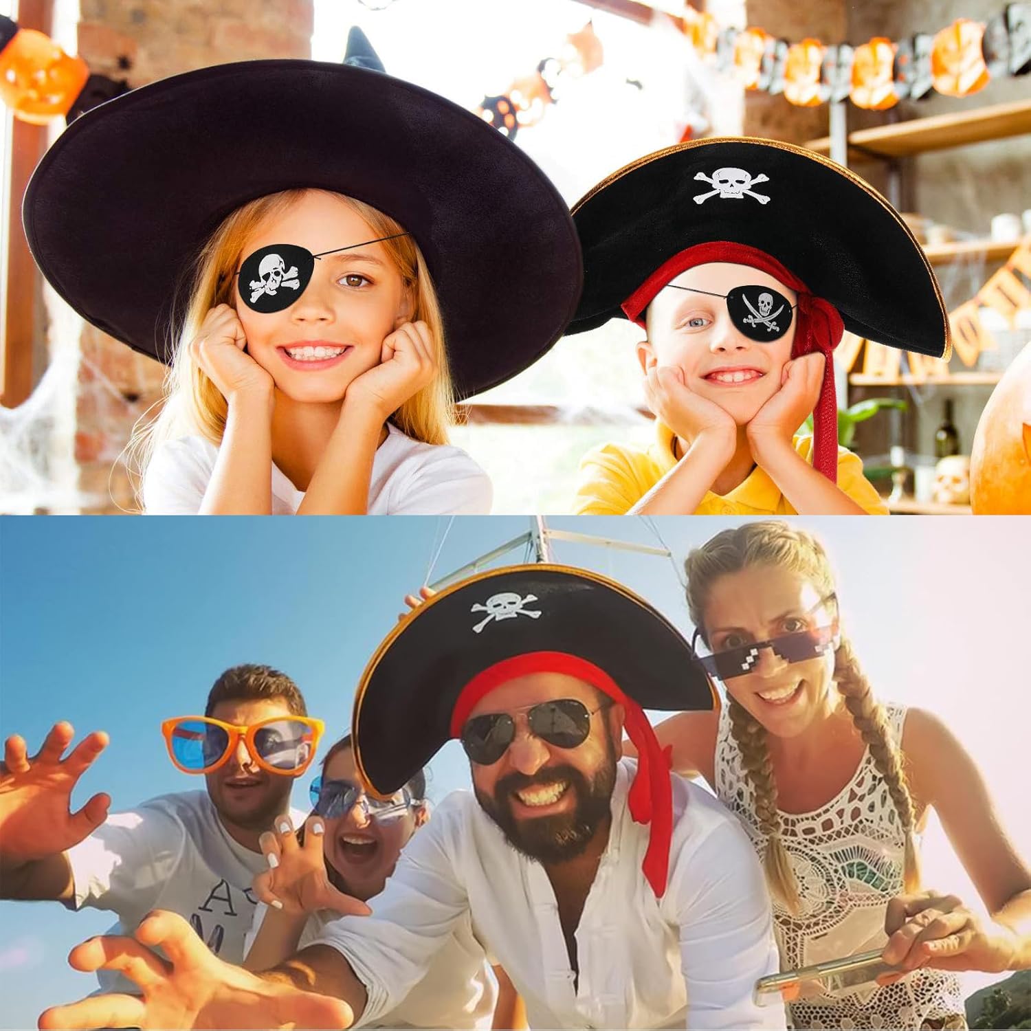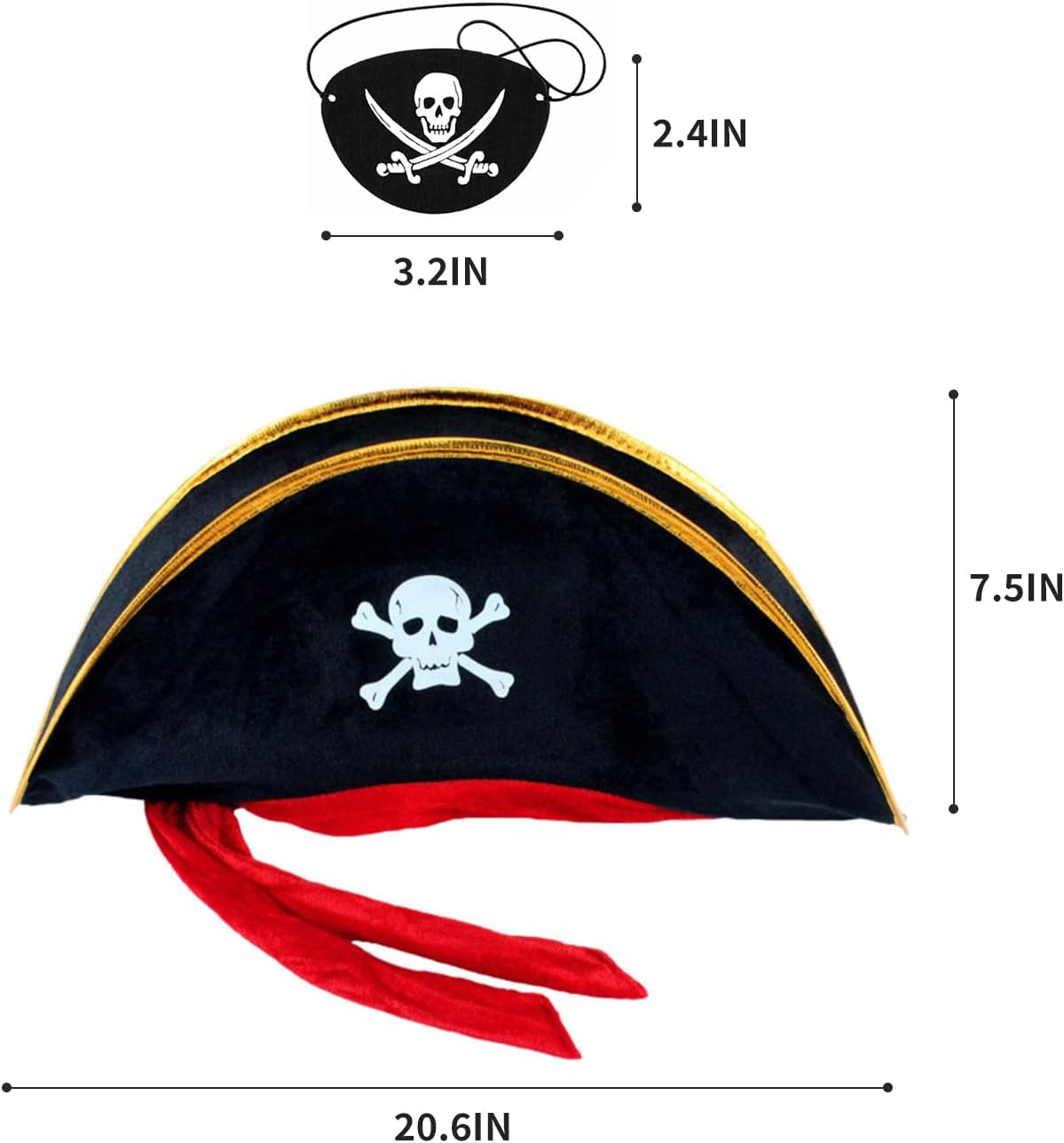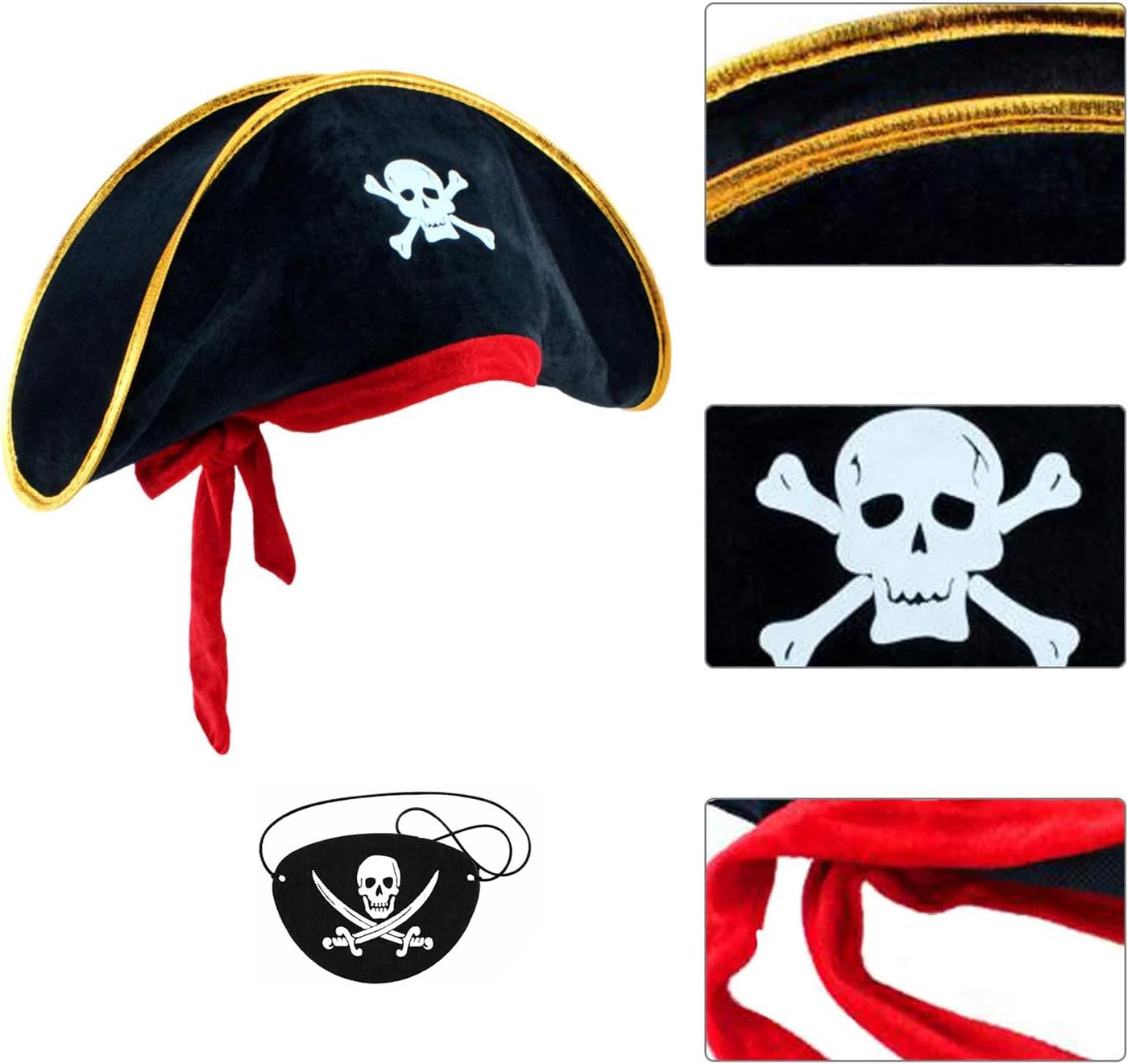 Comanda i mari con questo set di cappello da pirata e benda sull'occhio. Perfetti per feste e giochi di ruolo, questi classici accessori da pirata aggiungono stile, comfort e autenticità a qualsiasi avventura in costume.
