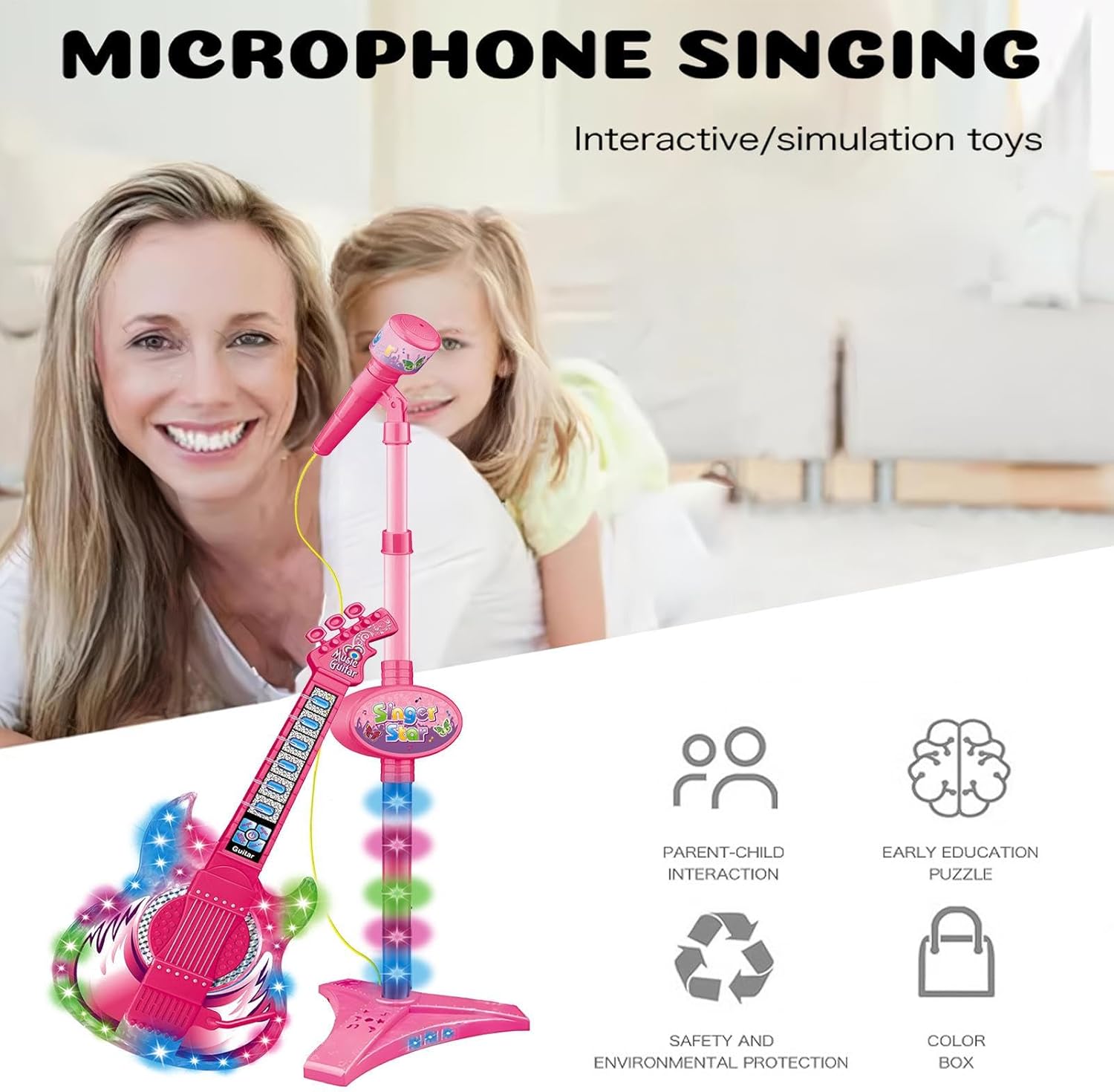 Diversi scopi: con 6 chiavi musicali e 4 modalità funzionali, il tuo bambino può riprodurre melodie diverse o creare la propria musica. Preparati a più creatività e intrattenimento Sviluppo delle abilità: creando un ambiente divertente e attraente per i bambini in cui puoi esplorare la musica, la nostra chitarra e il microfono per i bambini promuovono l'interesse musicale, promuove un significato musicale nascente e aiuta a sviluppare un talento per la musica Connessione musicale intelligente: la chitarra e il microfono per bambini hanno un design microfondo intelligente con il quale è possibile collegarlo al telefono cellulare o al lettore MP3, attraverso il quale il microfono può facilmente cambiare canzoni. I tuoi bambini possono godere di un'esperienza musicale più versatile e infinite ore di divertimento musicale interattivo Raccogli l'intrattenimento: con i suoi accattivanti effetti di luce colorati, la nostra chitarra e il microfono per bambini favoriscono la creatività musicale e offre uno strumento divertente per l'intrattenimento del tuo bambino Grande regalo: regalate 3 ai bambini di 8 anni un ottimo regalo con questo set di chitarra e microfono per bambini. Perfetto per suscitare interesse per la musica e sviluppare il tuo talento