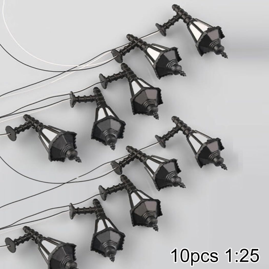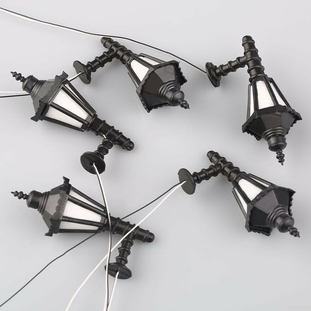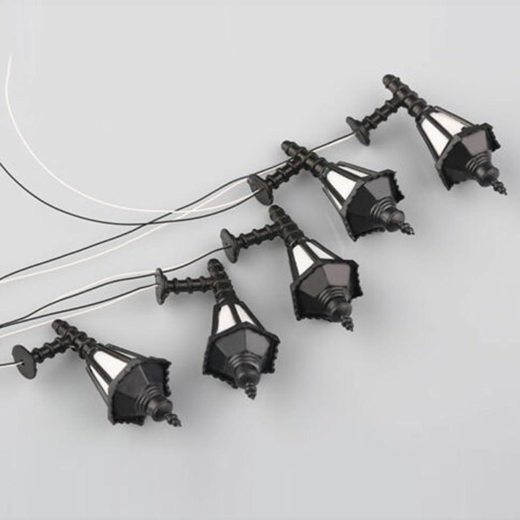 Materiale: queste lampade a lampione sono realizzate con materiali, sicurezza, eco-compatibilità e durata. Lampada da lavoro con cablaggio: goditi la lampada da lavoro di buona qualità con cablaggio incluso. LED per l'illuminazione: complete di fili e LED all'interno, queste lampade possono essere facilmente illuminate. Adatto per tensione da 3 V: progettato per l'uso solo con tensioni di alimentazione di 3 V, prestazioni ottimali. Perfette per scenari di modellini di treni: ideali per scenari di modellini di treni o accessori per la disposizione stradale, queste lampade sono perfette per il layout ferroviario e di edifici.